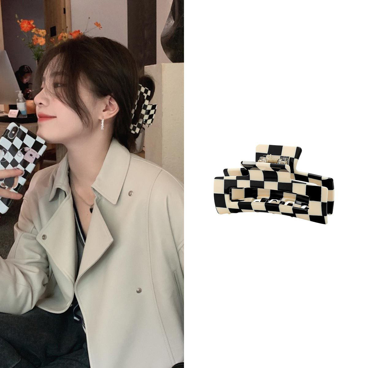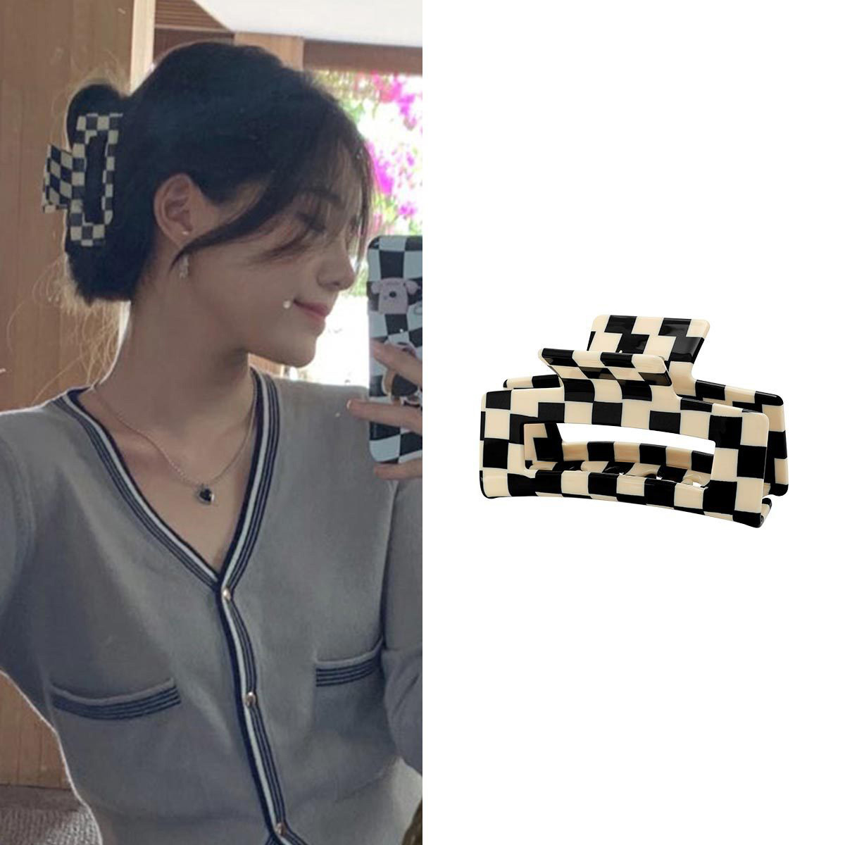 체커보드 머리핀 여성용 뒷머리 클립 프렌치 그랩 클립 모자 인터넷 연예인 2023 새로운 상어 클립 대형