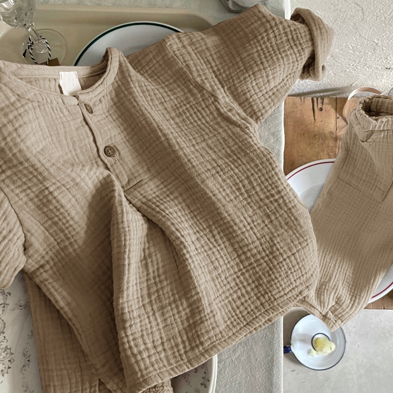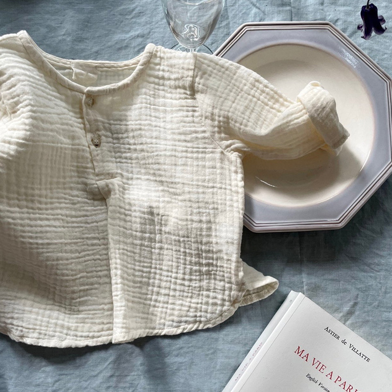 순면 거즈 상의 2026 봄 가을 신상품 한국 스타일 아동 여아 긴팔 단색 라운드넥 티셔츠 아동복스토어 가기