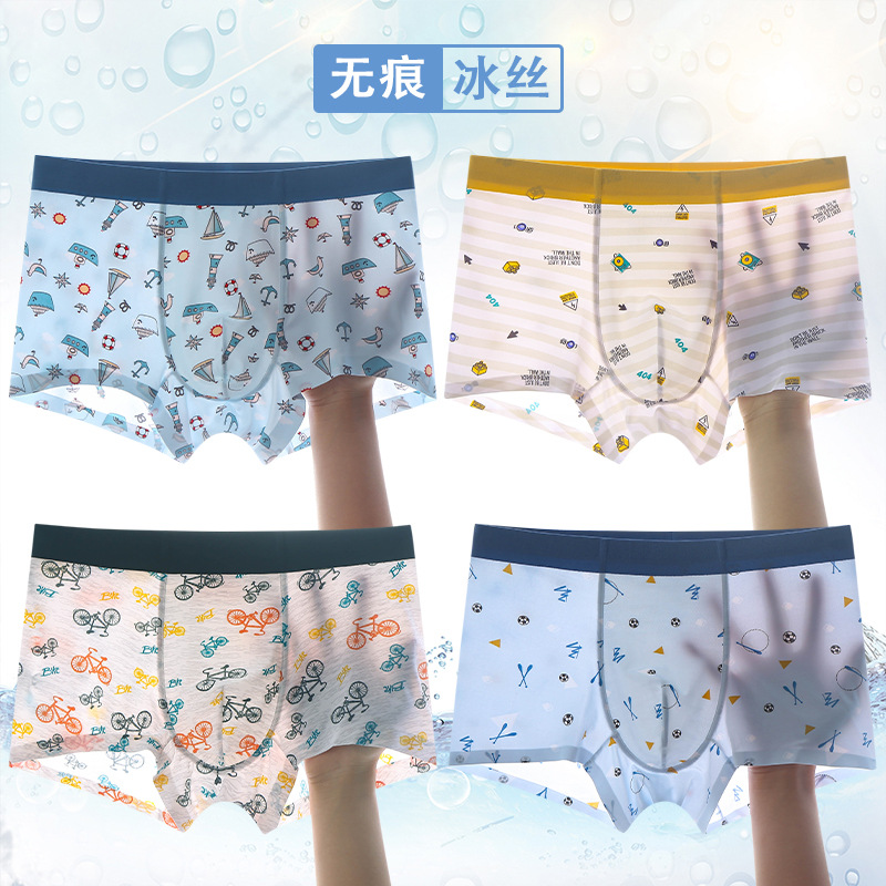 남아 청소년 속옷 아이스 실크 무봉제 여름 남아 아동 중학생 고등학생 대형 A급스토어 가기