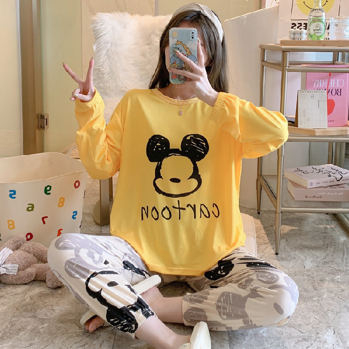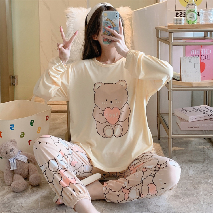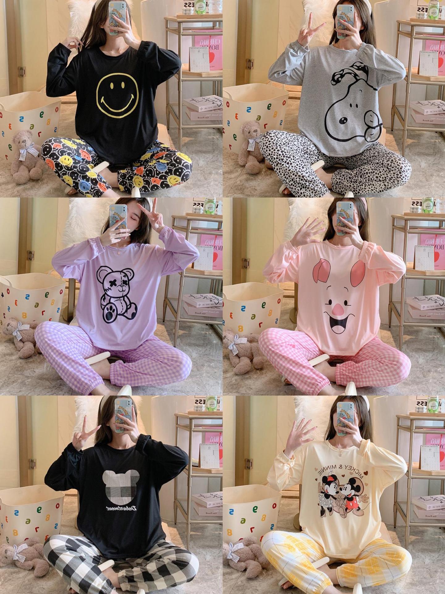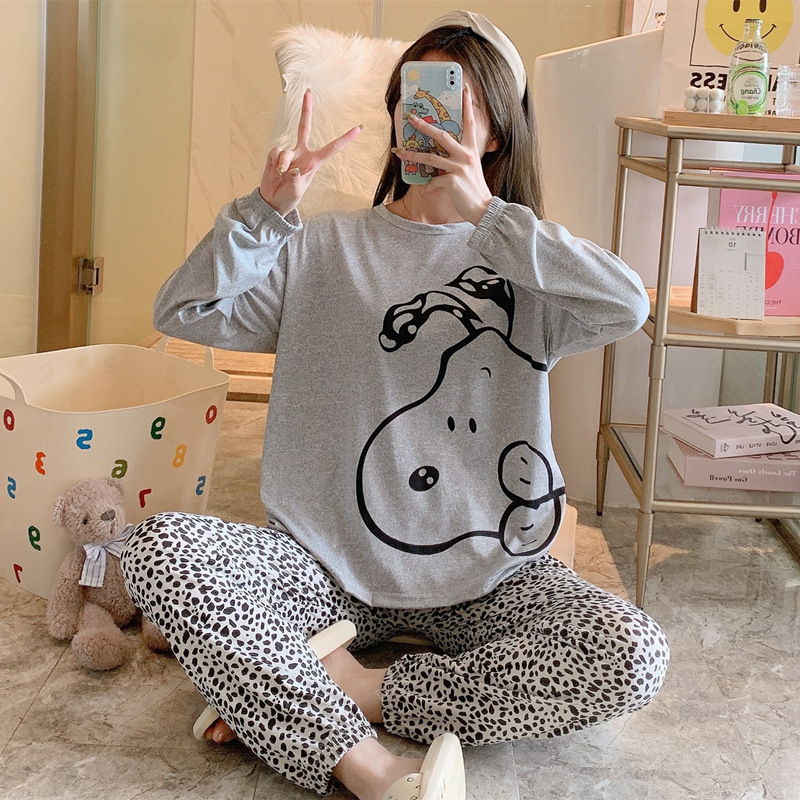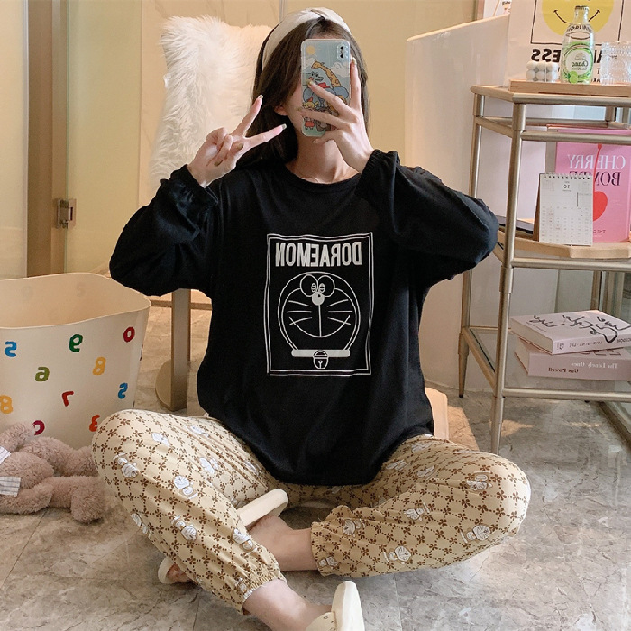 봄과 가을 새로운 만화 캐주얼 긴 소매 바지 느슨한 달콤한 귀여운 세트 가정 옷스토어 가기