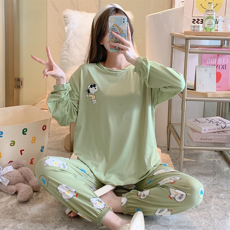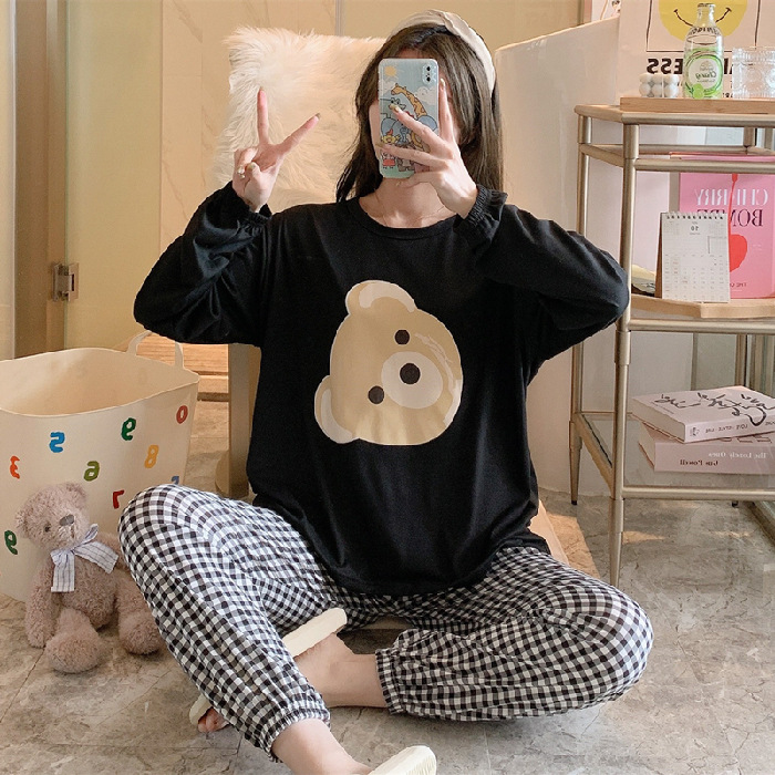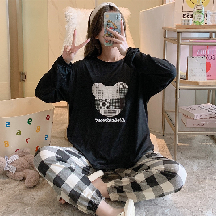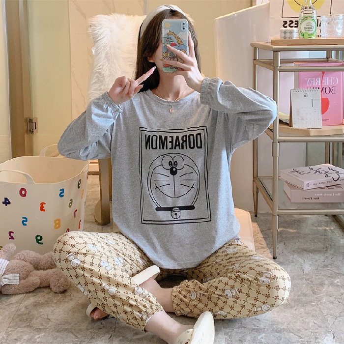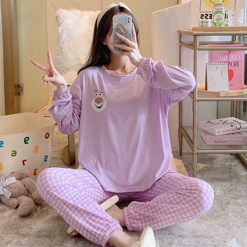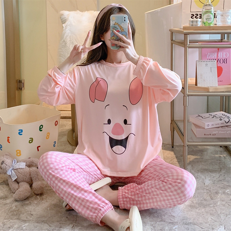 봄과 가을 새로운 만화 캐주얼 긴 소매 바지 느슨한 달콤한 귀여운 세트 가정 옷스토어 가기