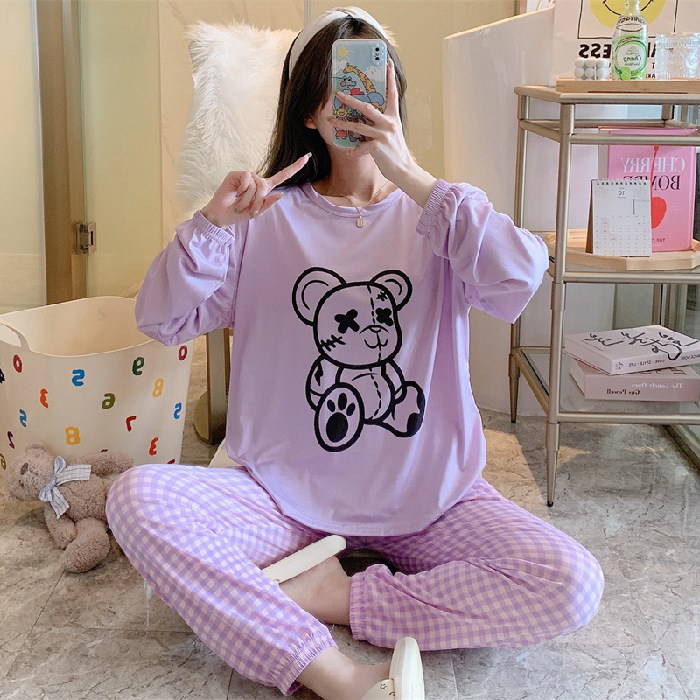 봄과 가을 새로운 만화 캐주얼 긴 소매 바지 느슨한 달콤한 귀여운 세트 가정 옷