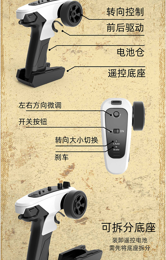 前进,后退,左右转弯,刹车等全比例同步控制功能。