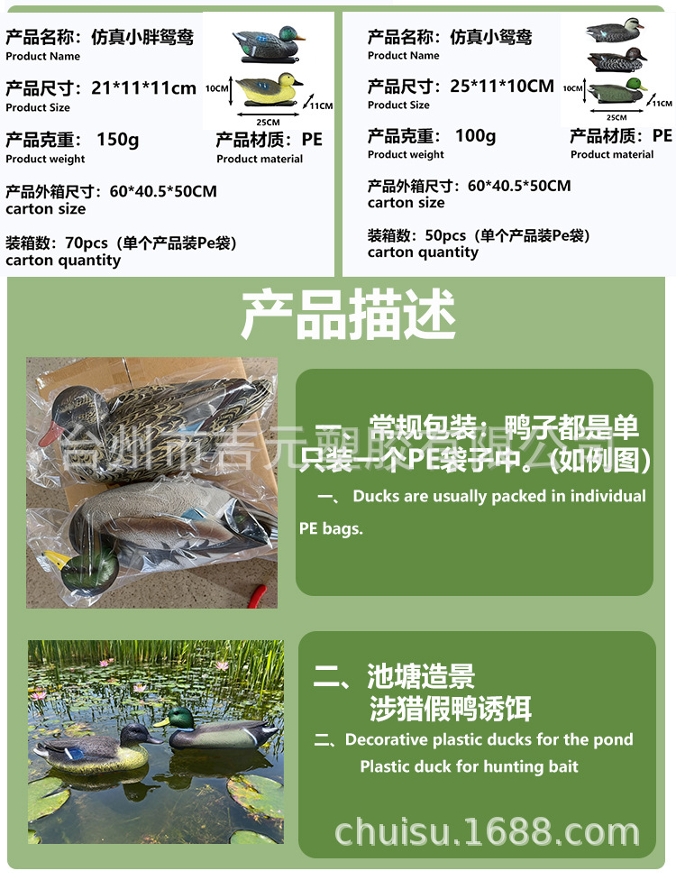 사냥용 미끼 모조 녹색 오리 정원 연못 장식 야외 농촌 모조 오리 미끼 장식품스토어 가기