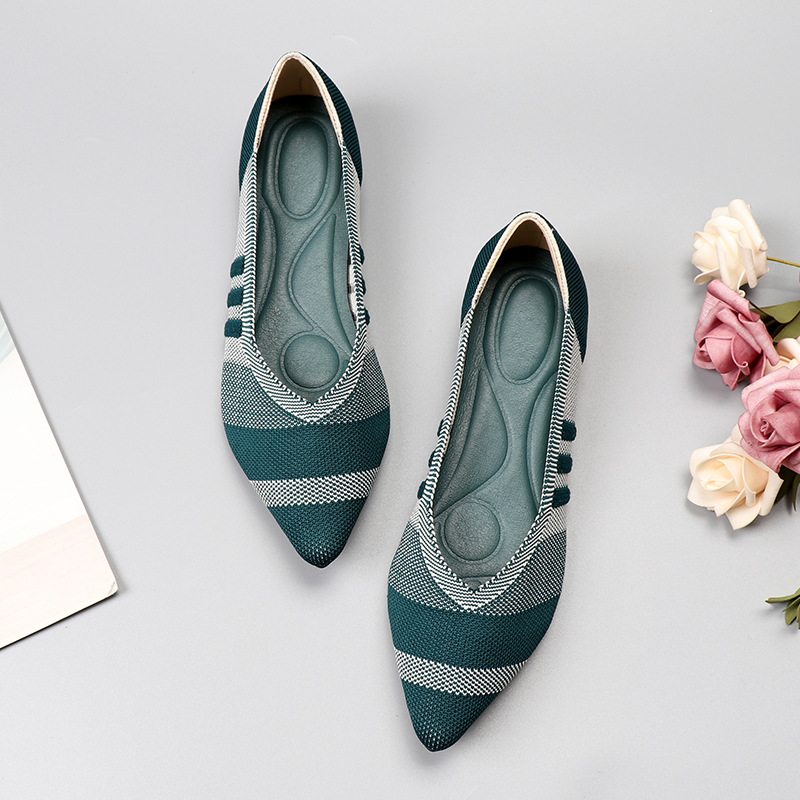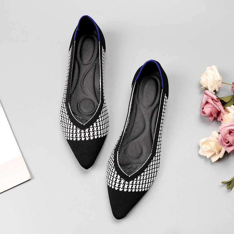 계란말이 유럽 및 미국 공주 스타일 신발, 봄 가을 싱글 슈즈, 플랫 슈즈, 플랫솔 대형 여성 신발, 부드러운 밑창 니트 뾰족한 보트 슈즈, 레오파드 프린트스토어 가기