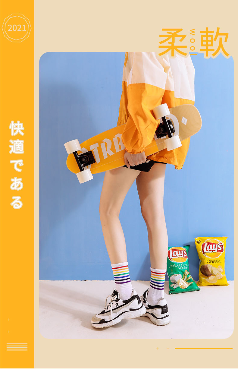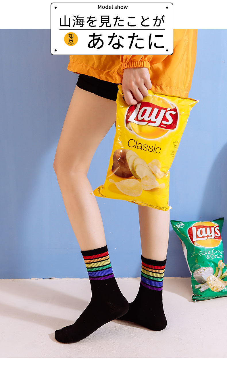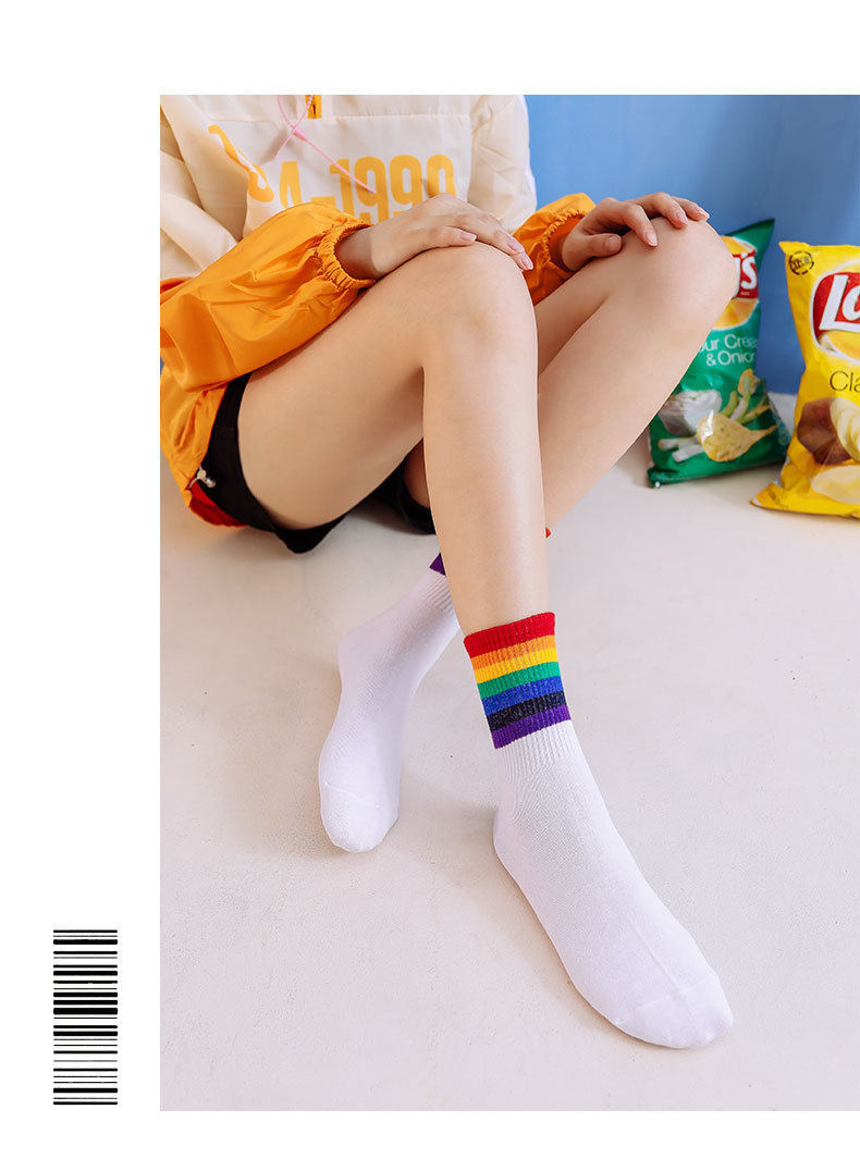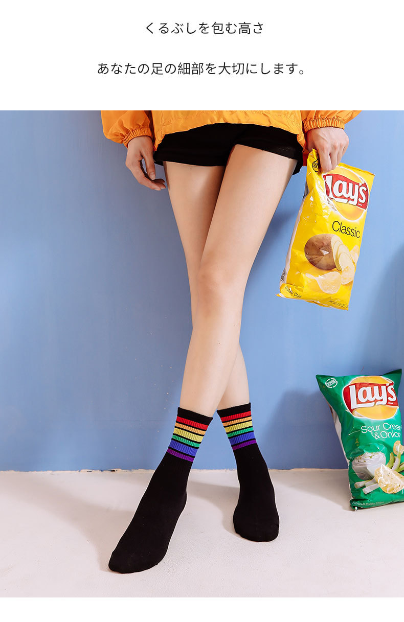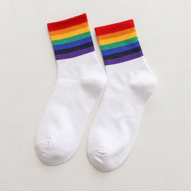 가을과 겨울 새로운 편안한면 양말 무지개 양말 줄무늬 간단한 따뜻한 튜브 양말 학술 스타일 흑백 도매