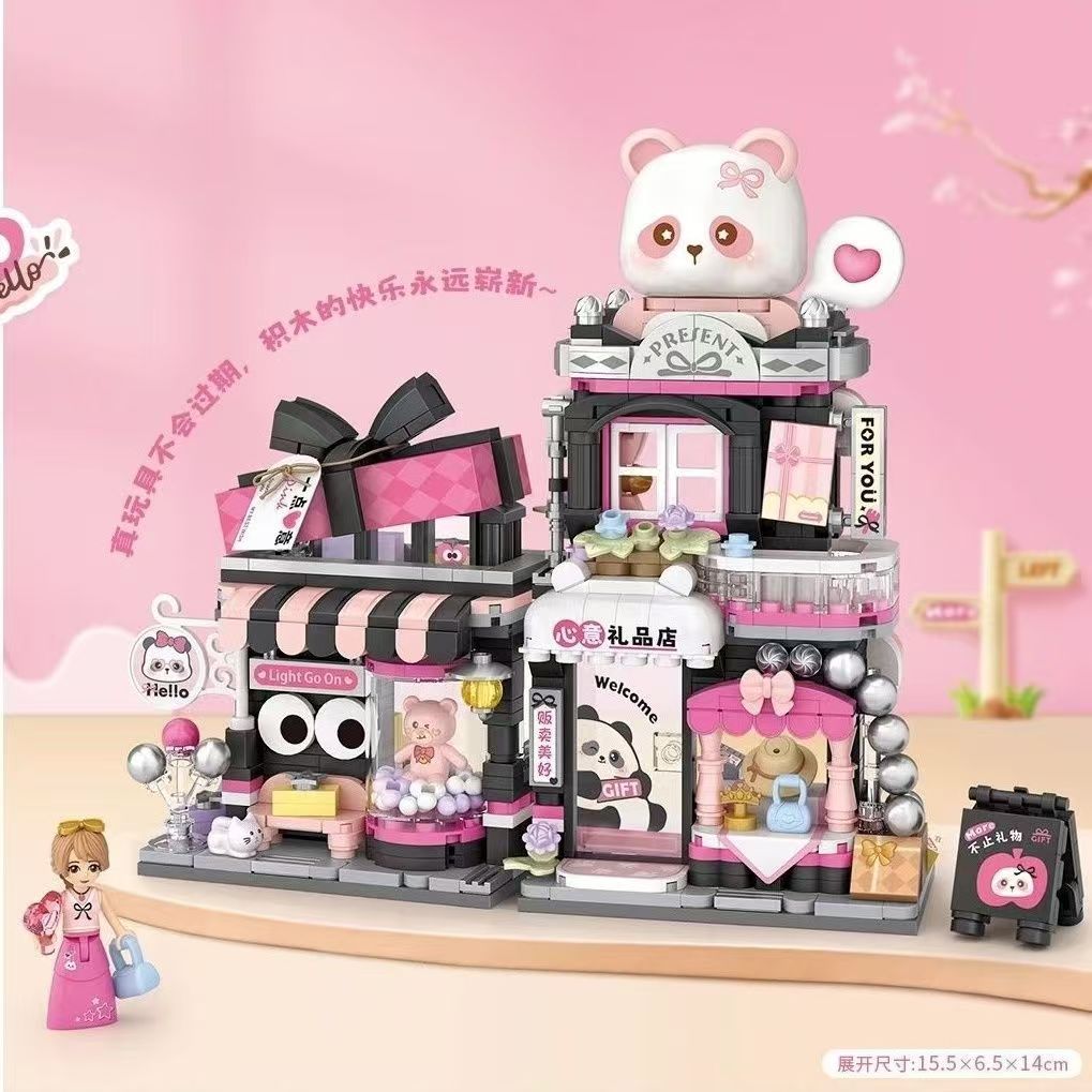 LOZ1382 작은 입자 접이식 집 어린이 장난감 교육 조립 된 3 차원 건물 블록 직소 장면 국경스토어 가기