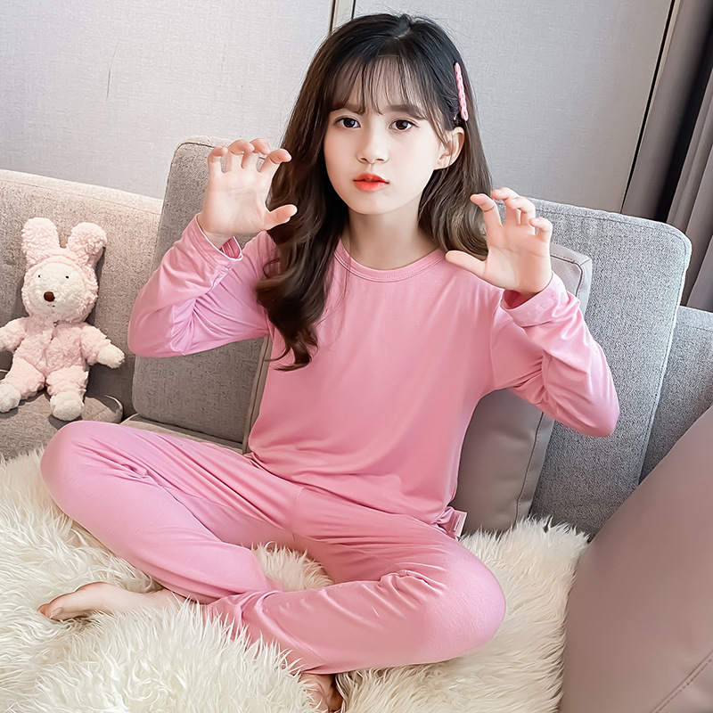 어린이 모달 잠옷 여아 가을 옷 가을 바지 가을과 겨울 속옷 어린 소녀의 얇은 긴팔 가정 옷 세트