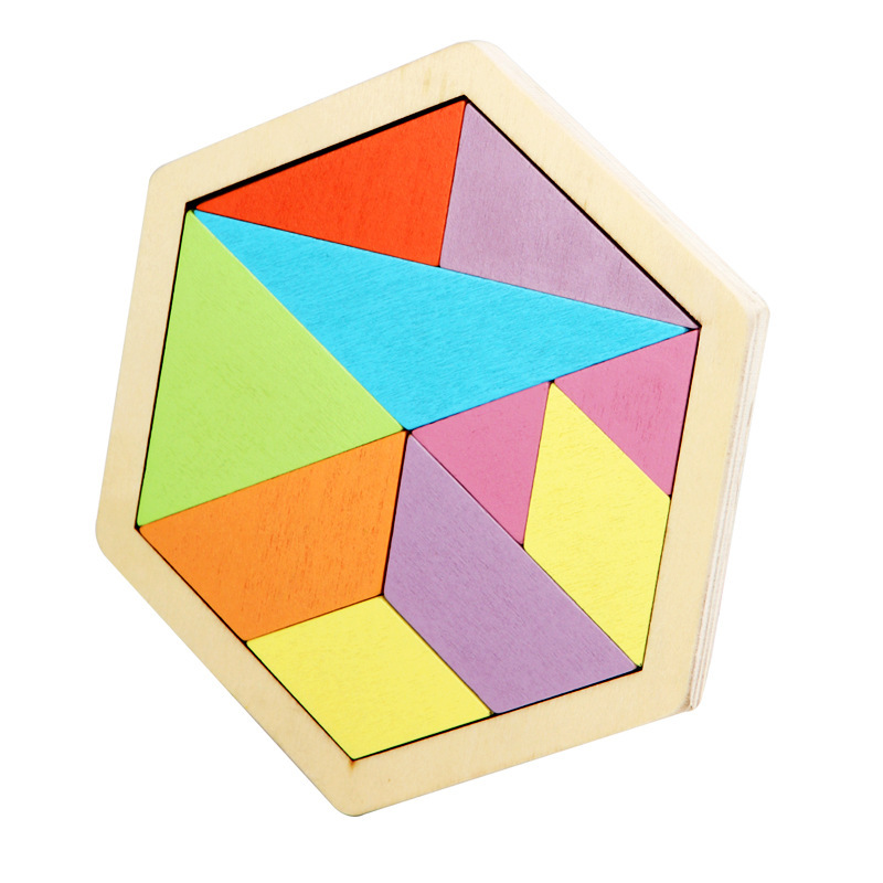 나무 퍼즐 육각형 기하학적 퍼즐 퍼즐 어린이 빌딩 블록 Tangram 잠금 해제 콩밍 잠금 조기 교육 감압스토어 가기