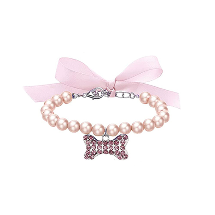 국경을 넘는 신제품 애완동물 액세서리 진주 목걸이 고양이와 강아지 목걸이 개뼈 펜던트 액세서리 중소형견 목걸이