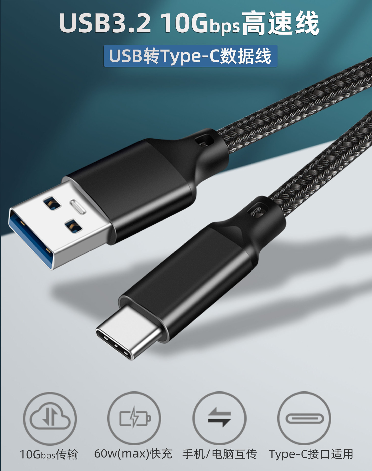 데이터 케이블 타입-C to USB3.2 고속 케이블 10Gbps 하드 디스크 데이터 케이블 AtoC 컴퓨터 및 휴대폰 케이블 60w