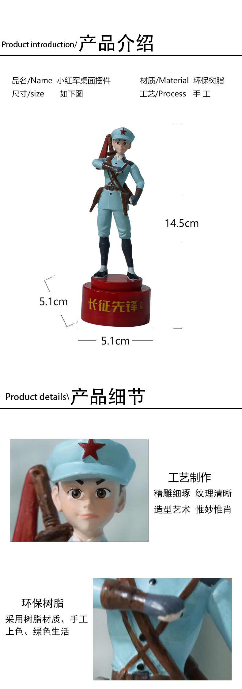크리 에이 티브 수지 인형 장식품 만화 붉은 군대 조각 여번째 경로 육군 붉은 그림 데스크탑 장식품 수지 공예