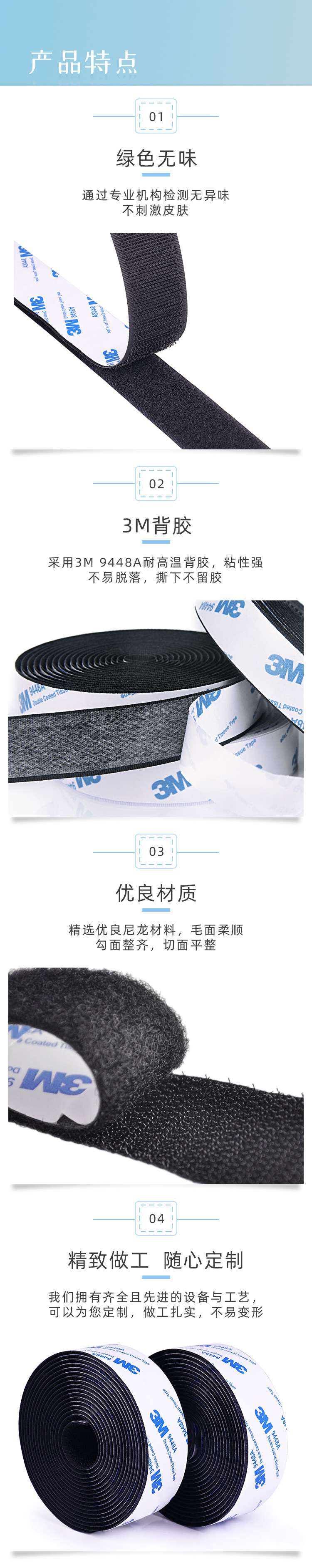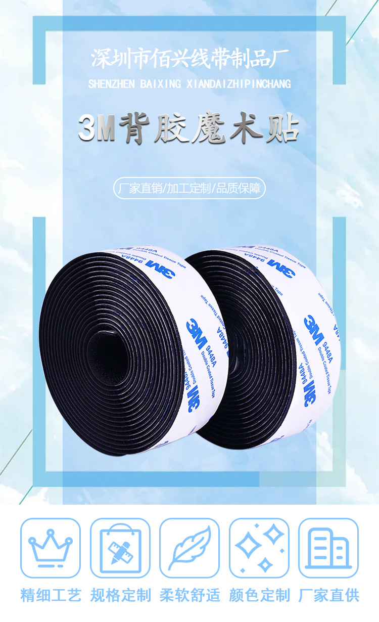 3M 접착식 벨크로 고온 저온 견디는 커튼 양면 접착 테이프 무흔적 강력 접착제 자동차 매트용 벨크로 테이프