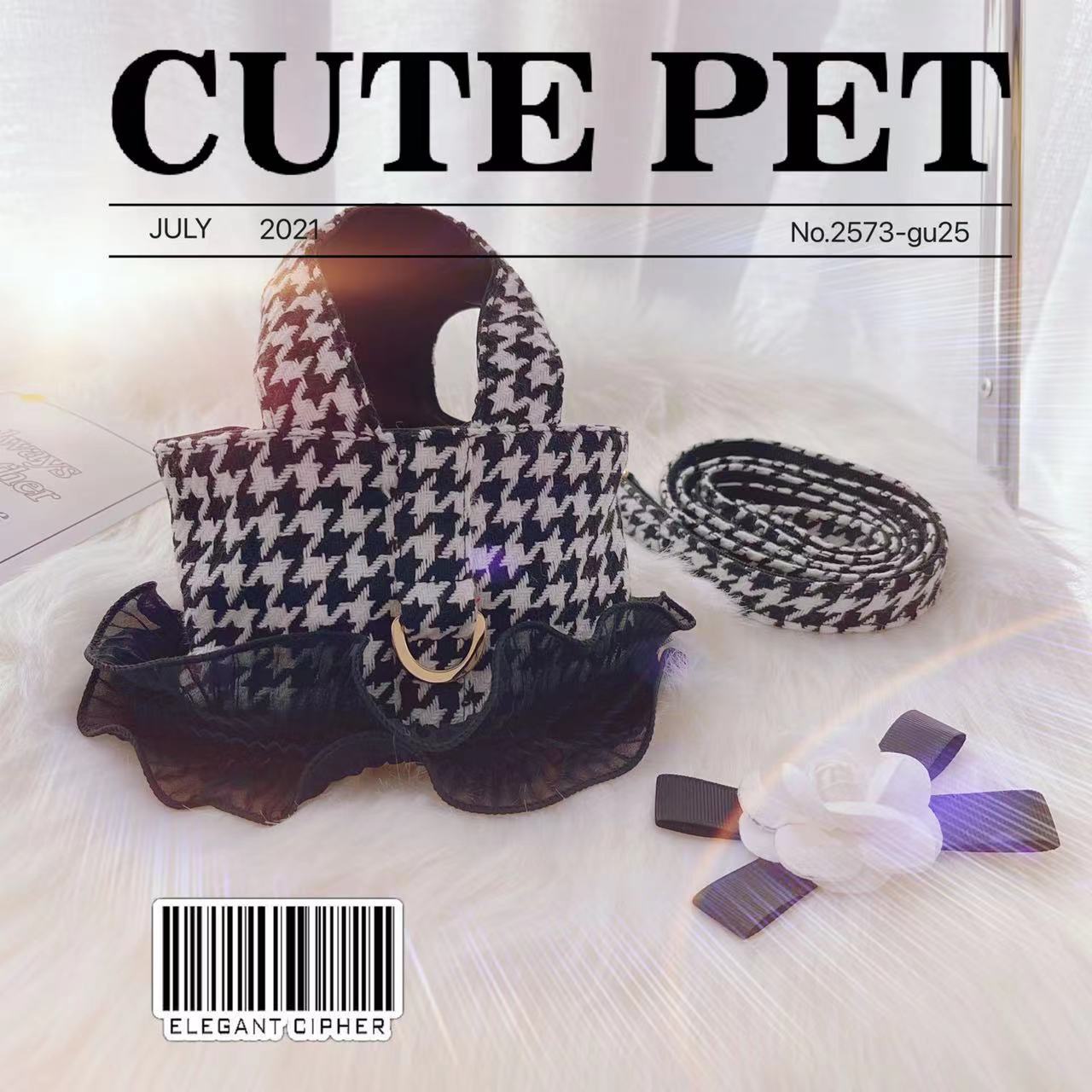 애완 동물 개 고양이 옷 샤넬 스타일 Houndstooth 견인 의류 테디베어 외출 조끼 개 산책 로프스토어 가기