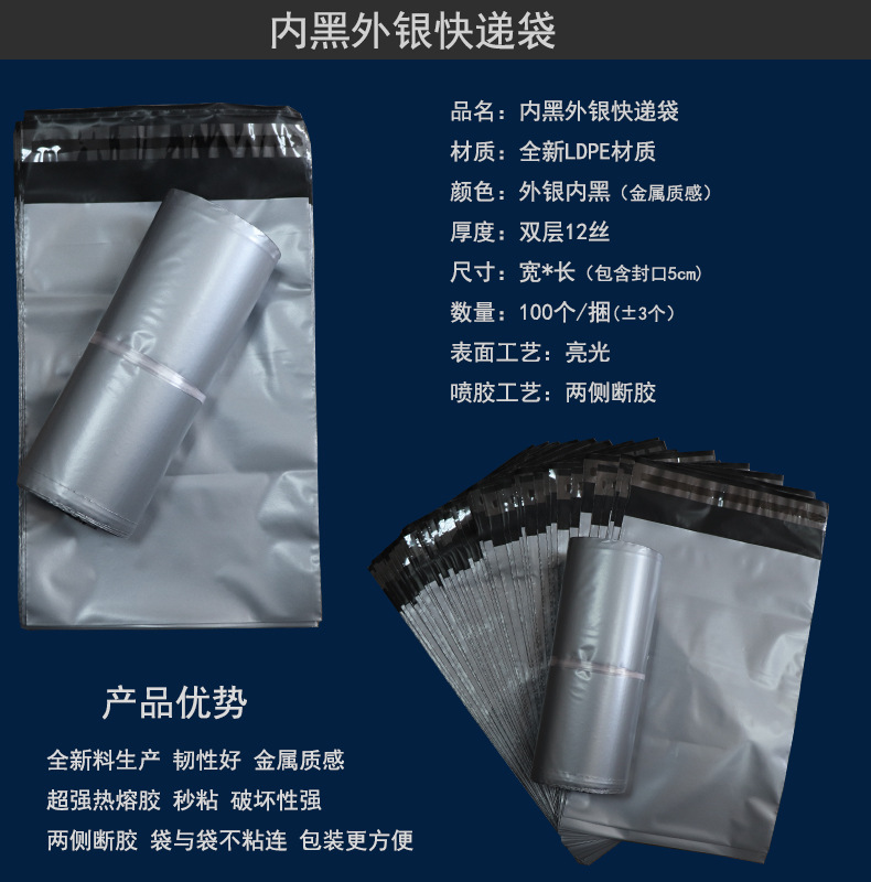 • 내부 검은 회색 외부 실버 12 실크; 15*25cm 100