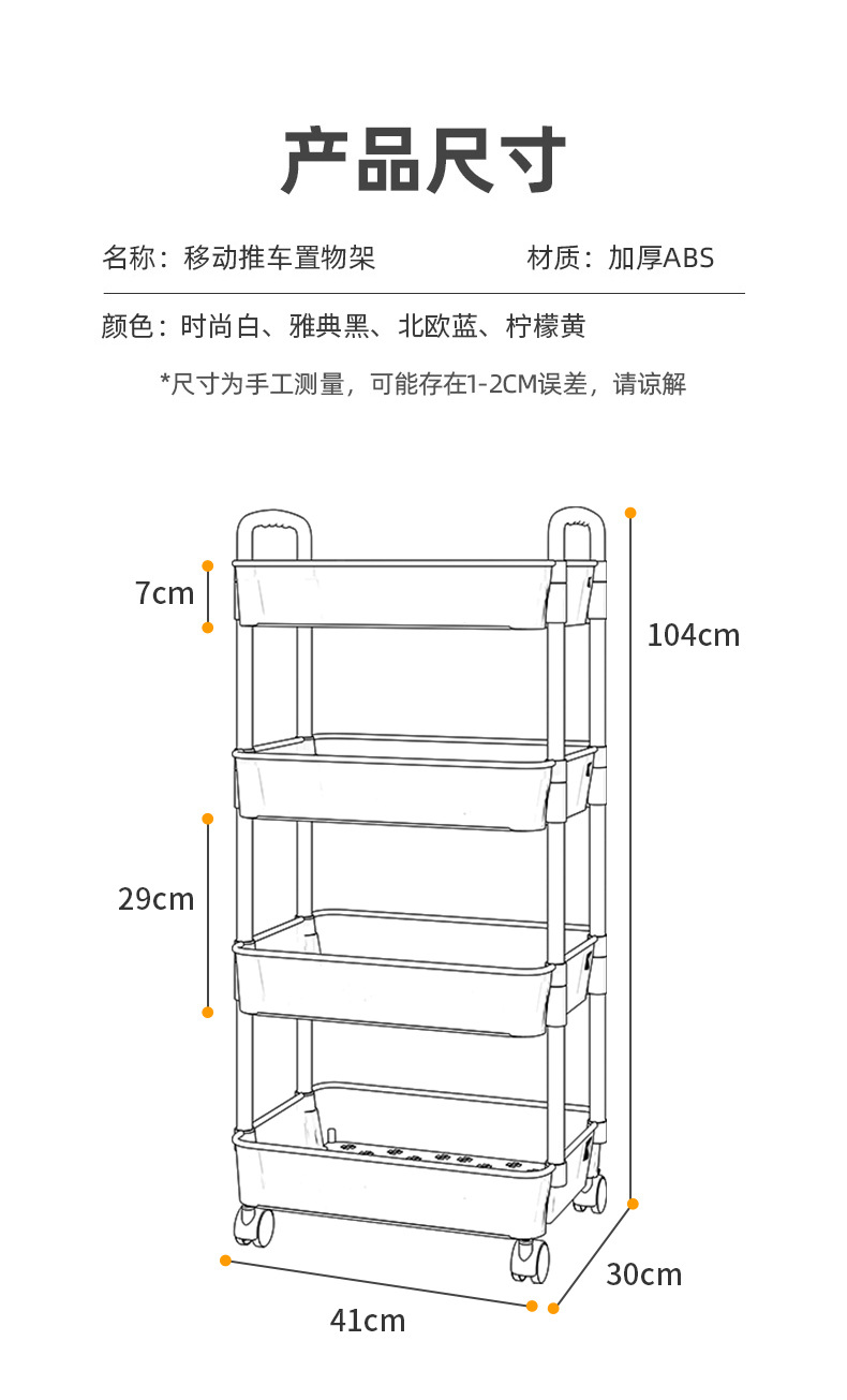 스토리지 랙 트롤리 바닥 주방 바닥 욕실 다층 간식 침실 욕실 모바일 스토리지 랙
