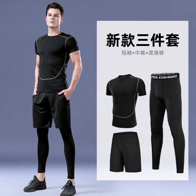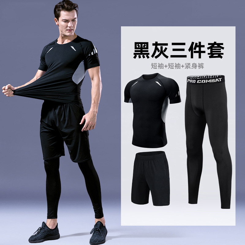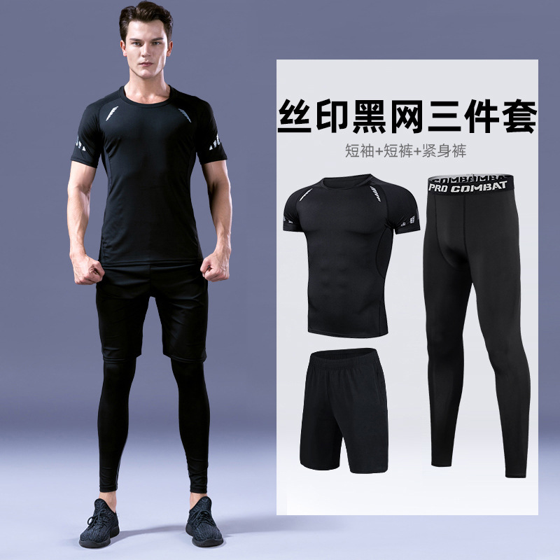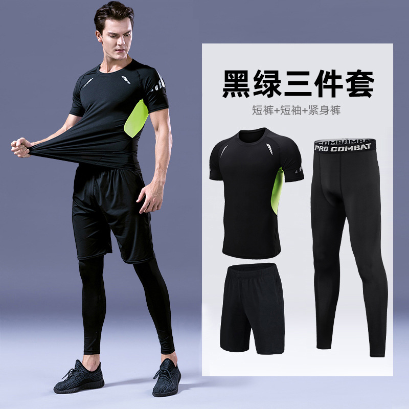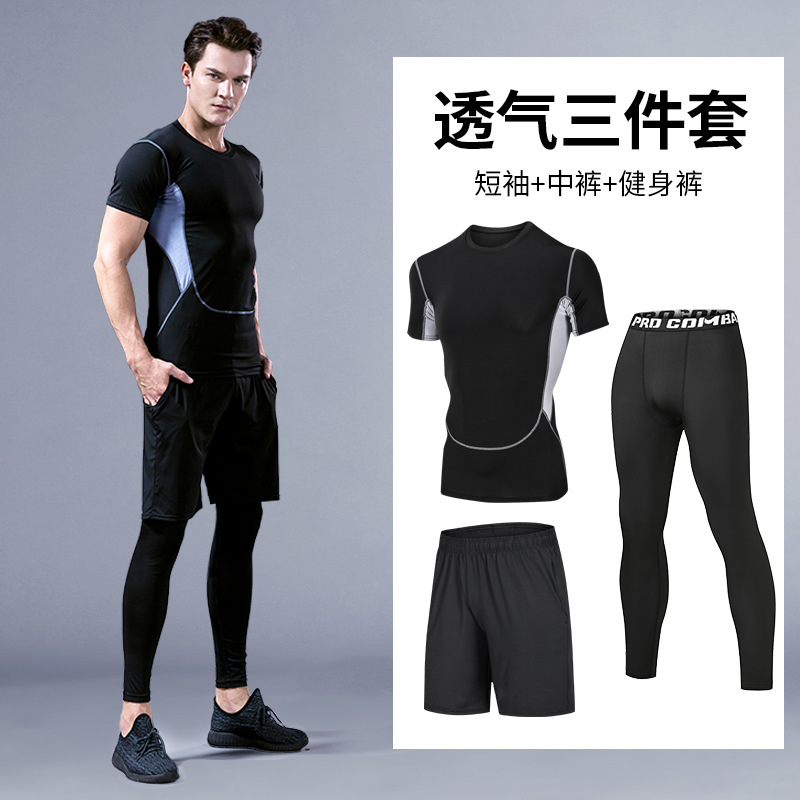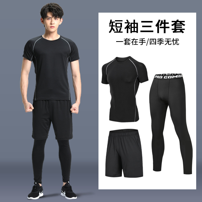 피트니스 의류 스포츠 세트 남성용 속건 의류 꽉 고탄성 농구 훈련 달리기 장비 모닝 런 반팔 여름
