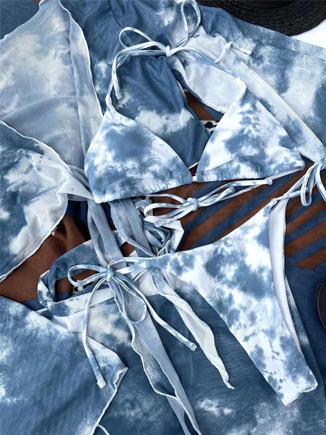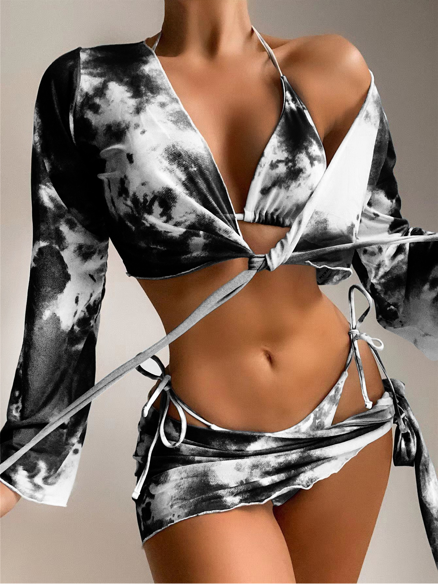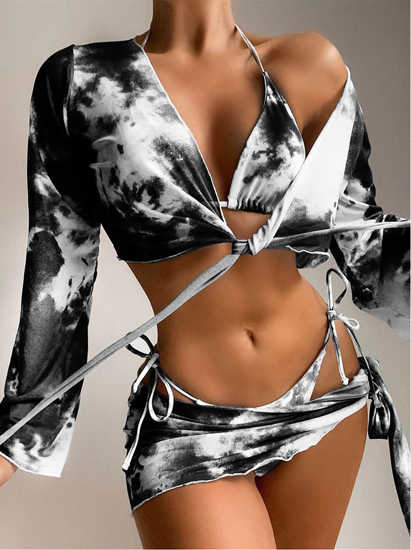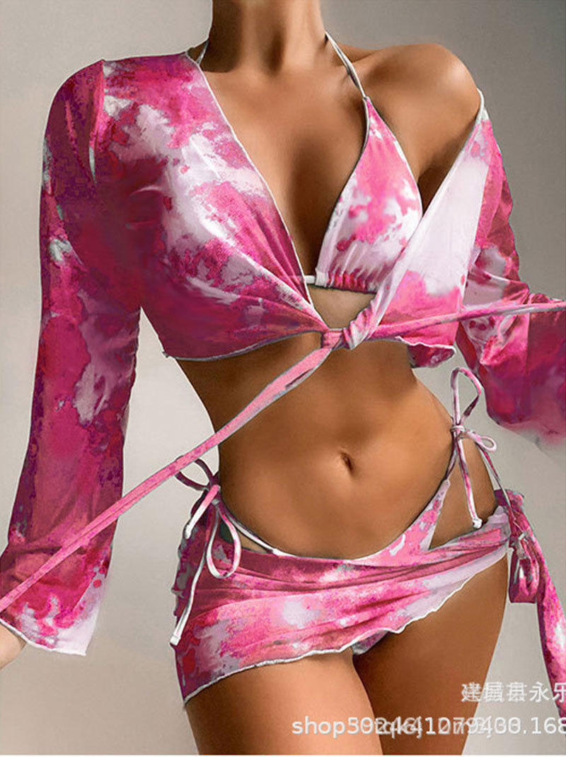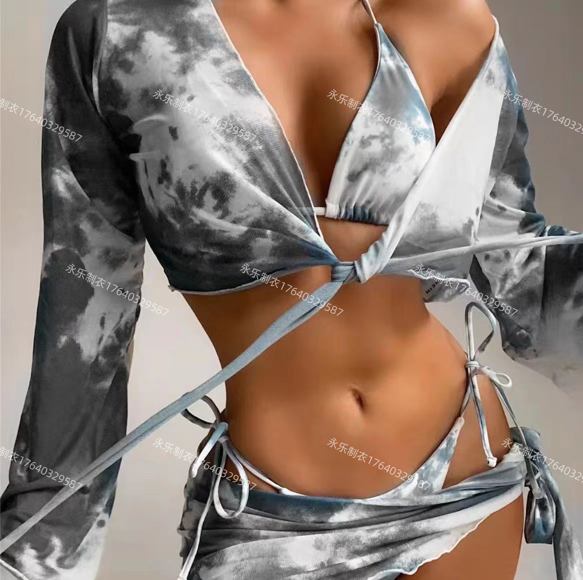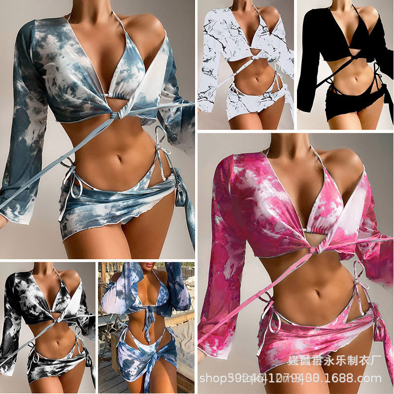 2025 유럽 및 미국 알리익스프레스 아마존 해외 무역 여성용 타이다이 수영복 섹시한 4피스 비키니 수영복