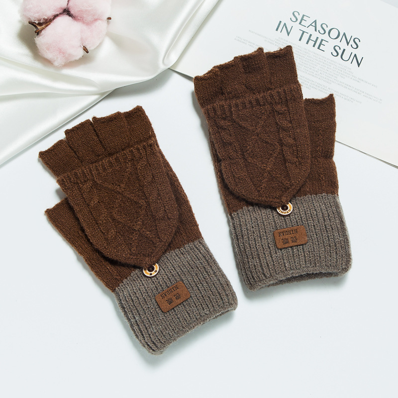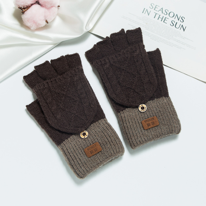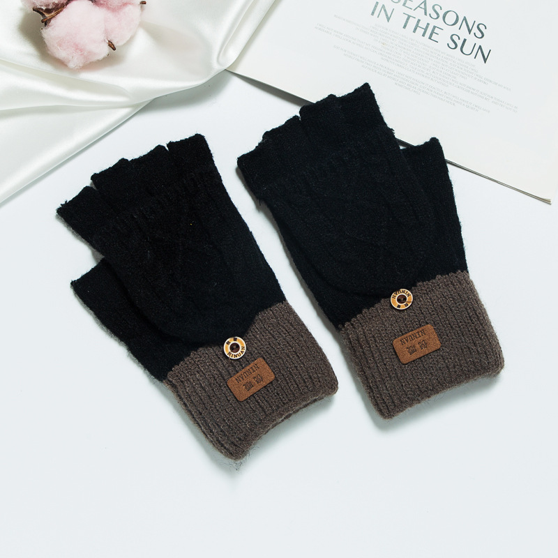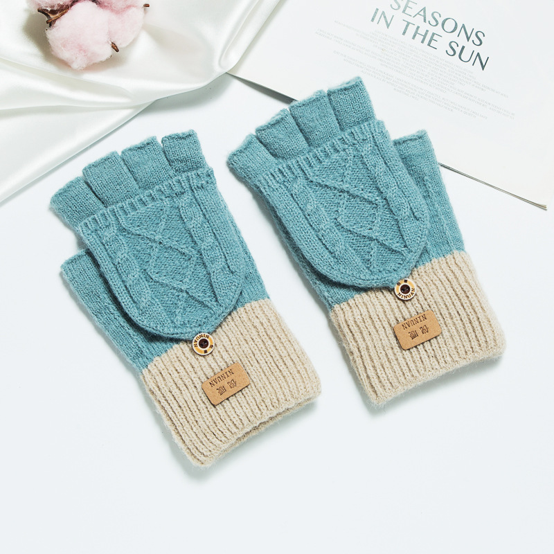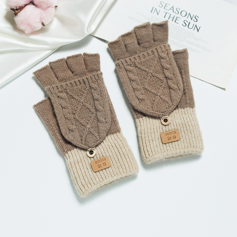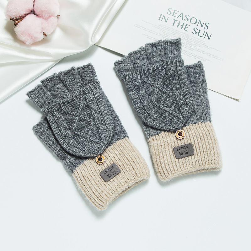 겨울 따뜻한 장갑 여자의 두꺼운 기모 노크 알파카 봉제 학생 커플 반 손가락 플립 니트 장갑