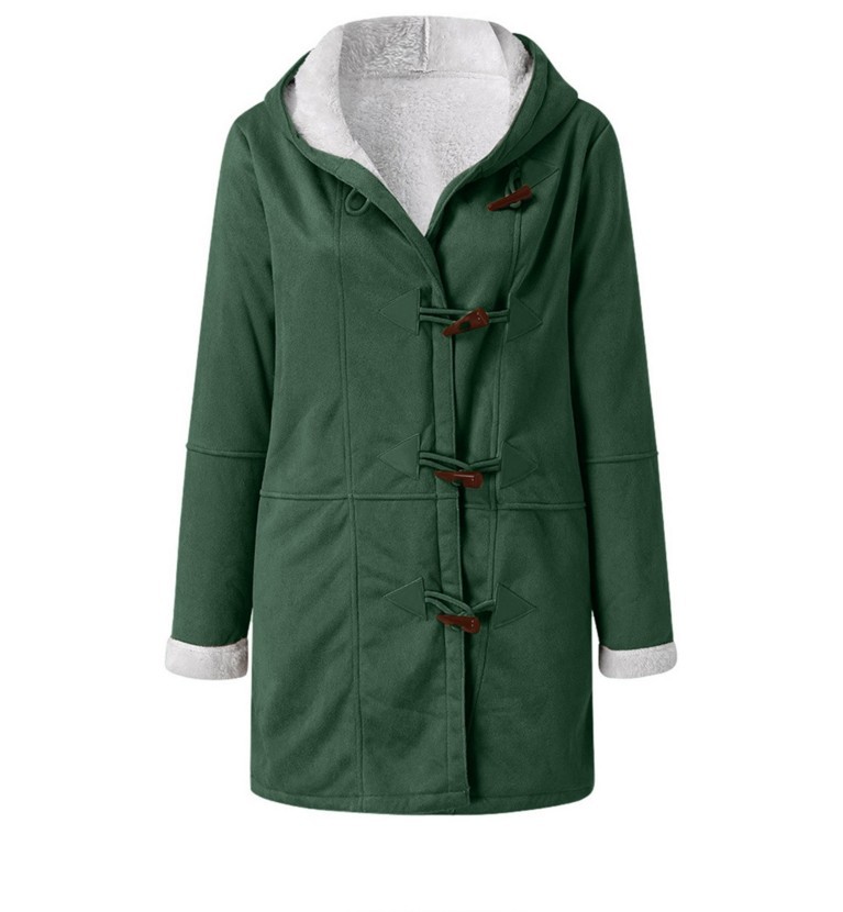 유럽과 미국 2021 아마존 크로스 보더 솔리드 컬러 캐주얼 버튼 가디건 따뜻한 중간 길이 후드 포켓 여성 코트스토어 가기