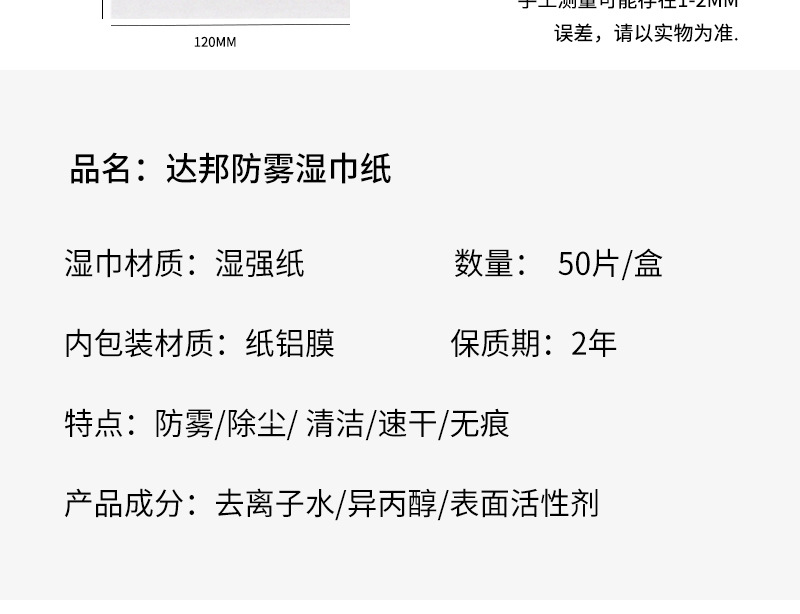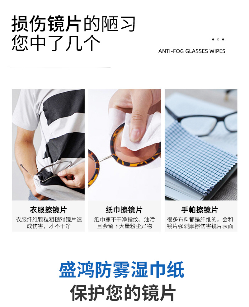 공장 재고 일회용 렌즈 천 휴대용 렌즈 와이프 김서림 방지 종이 타월 와이프 안경 와이프 도매 50 개