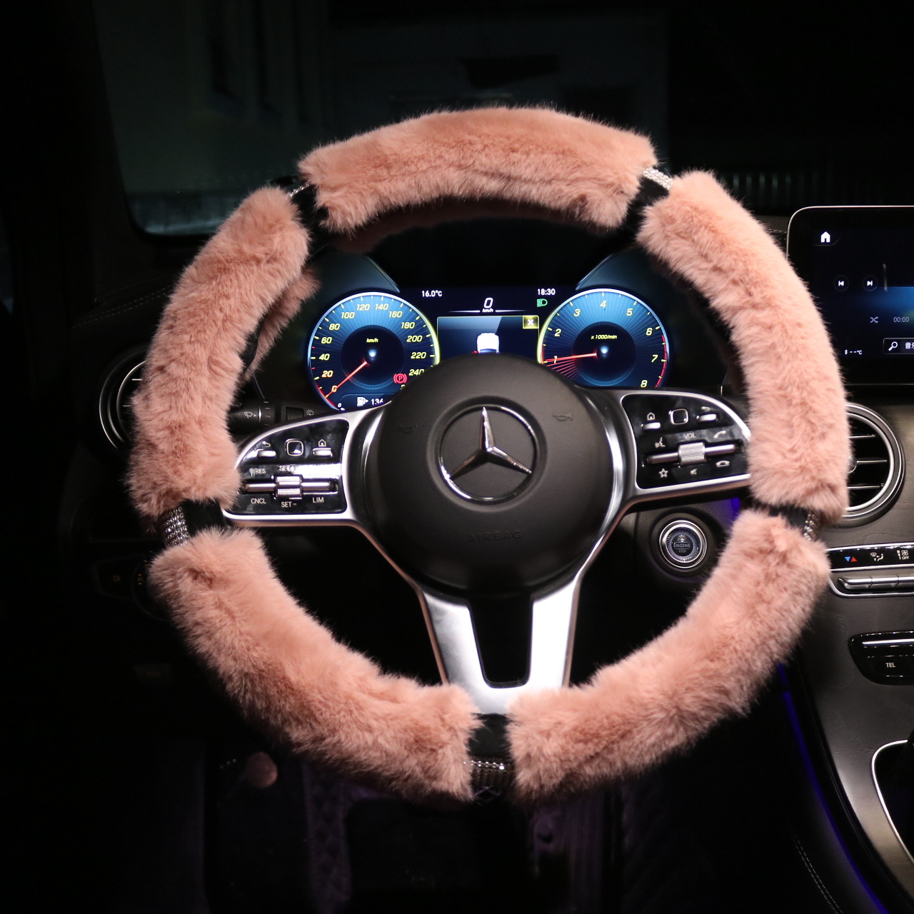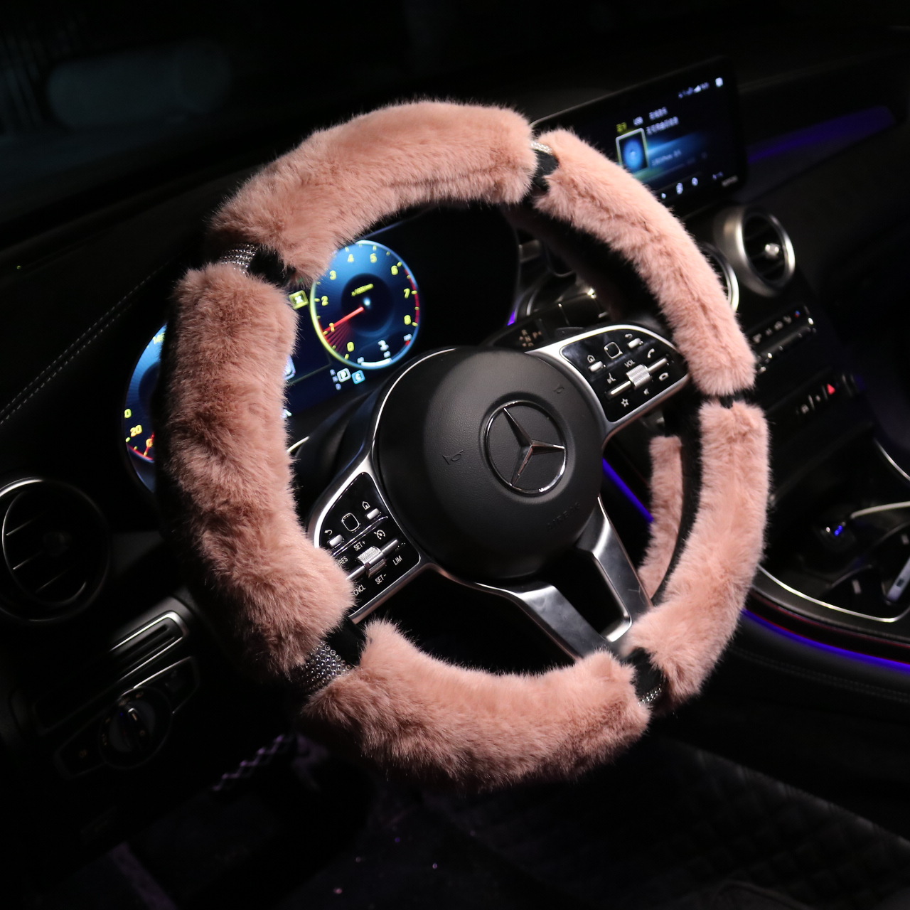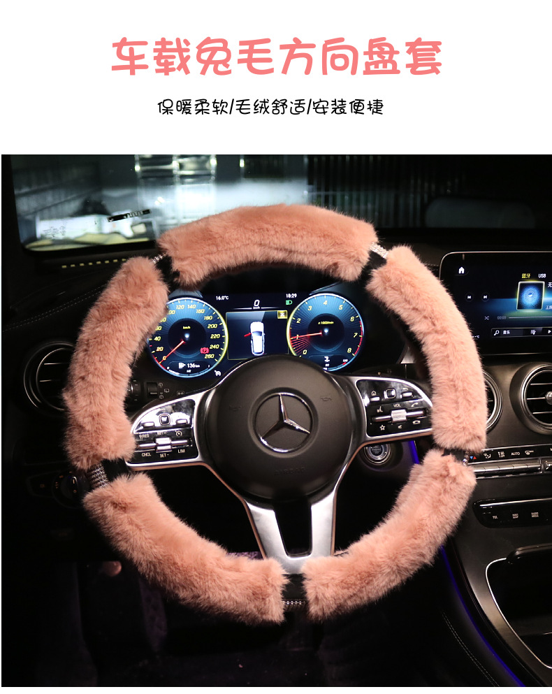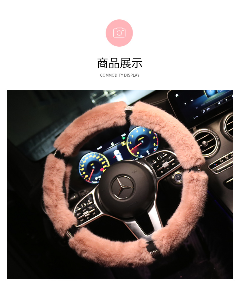 • 핑크-토끼 모피 및 다이아몬드 더블 스티어링 휠 커버