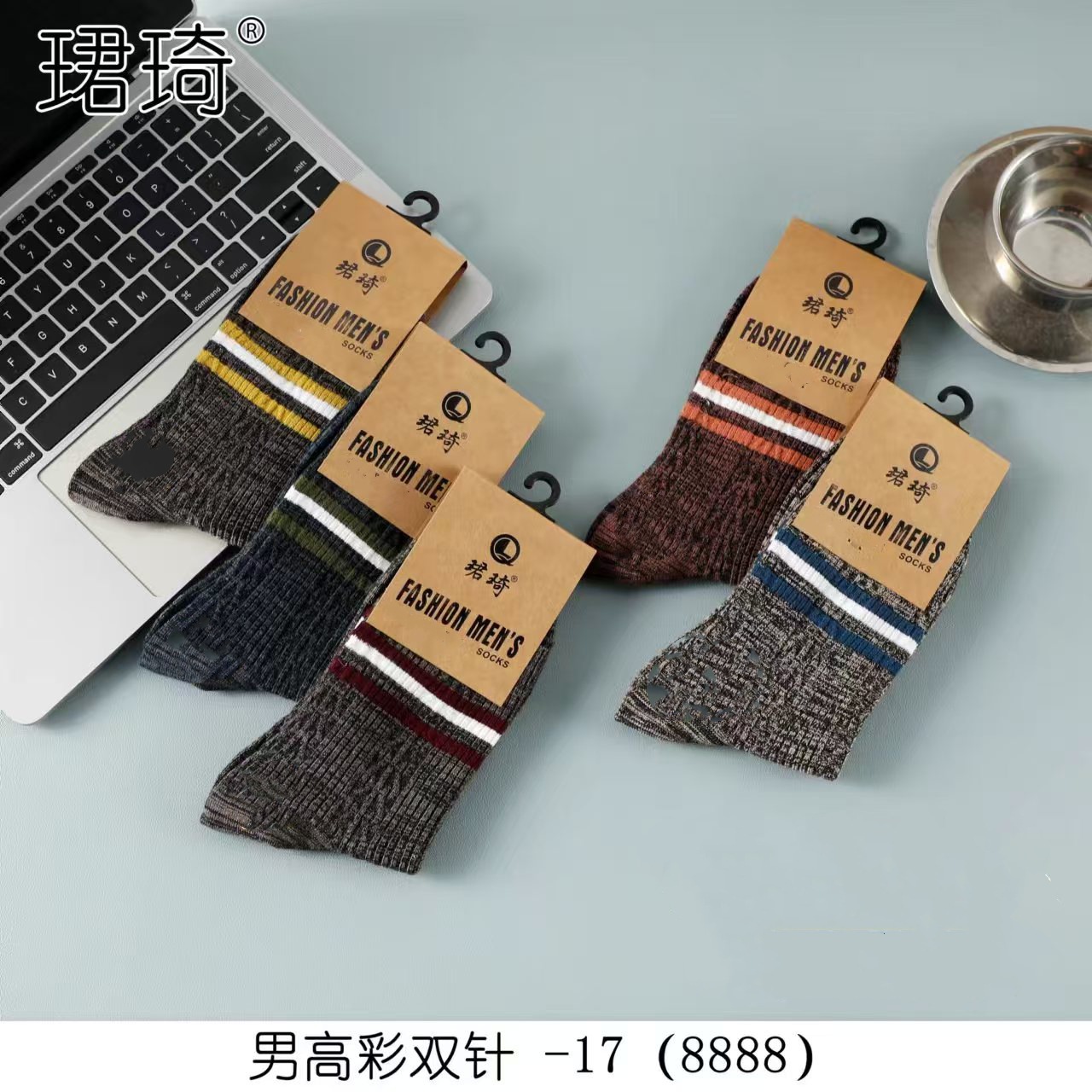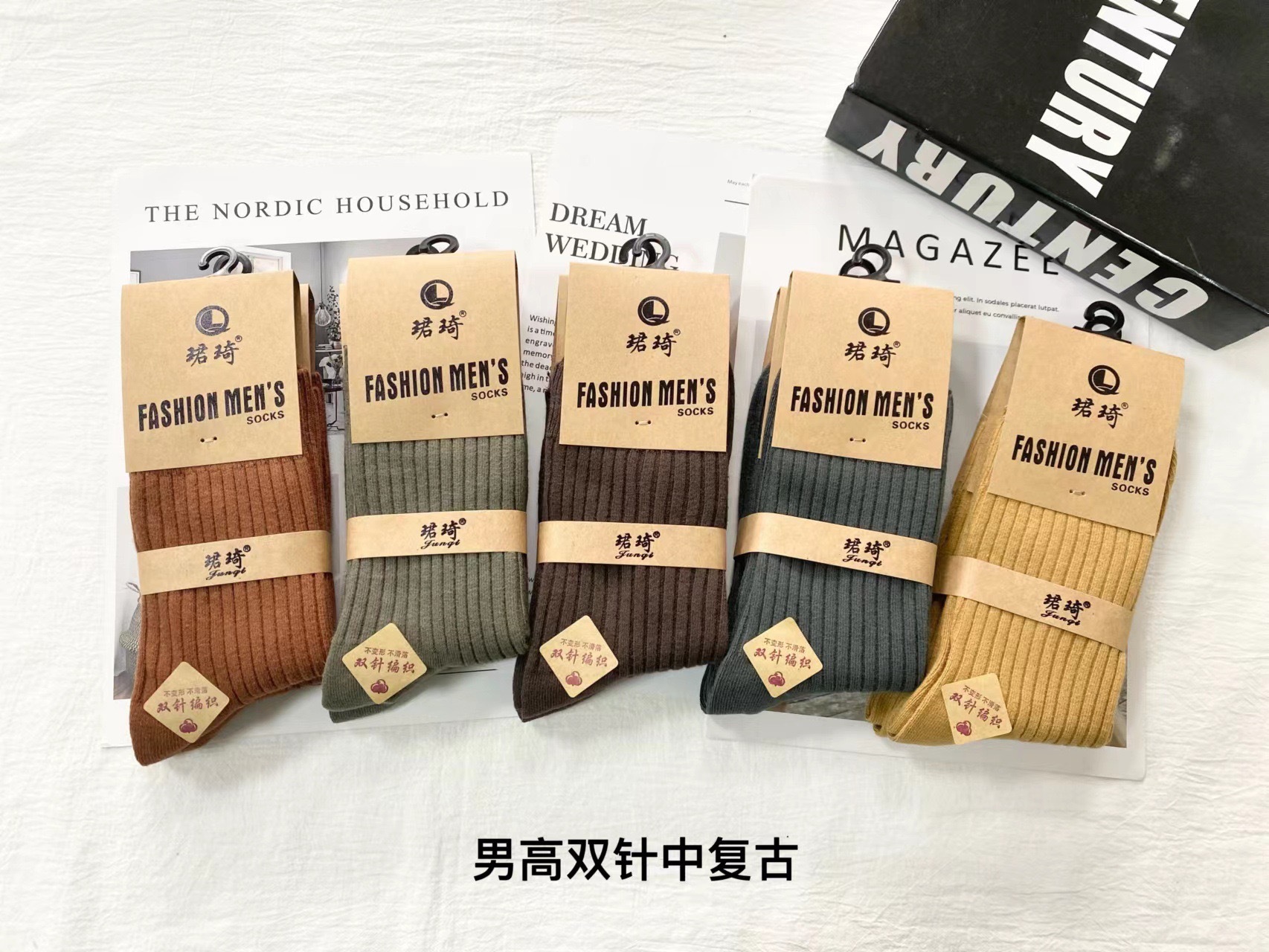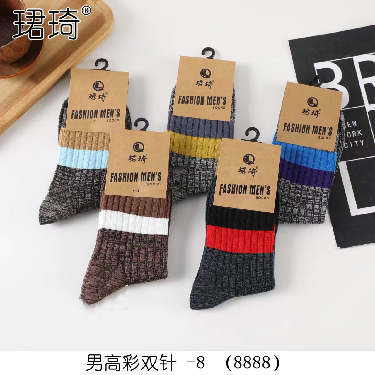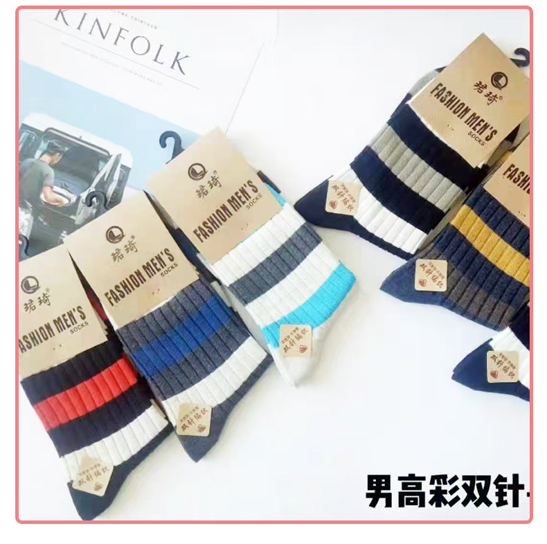 재고 Jun Qi 이중 바늘 8888 양말 Jun Qi 면 양말 남성용 긴 핀 양말 Jun Qi 캐주얼 핀 양말