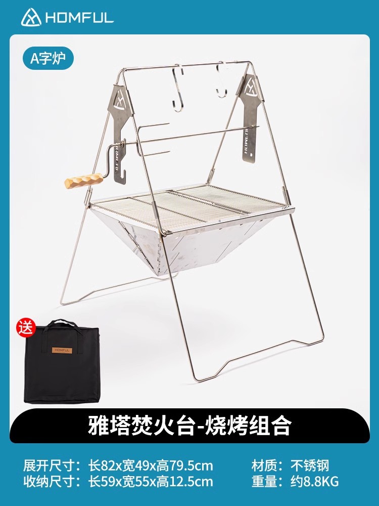 HOMFUL 스테인리스 스틸 바베큐 그릴 숯불구이 오븐 BBQ 화로 접이식 캠핑 휴대용 야외용스토어 가기