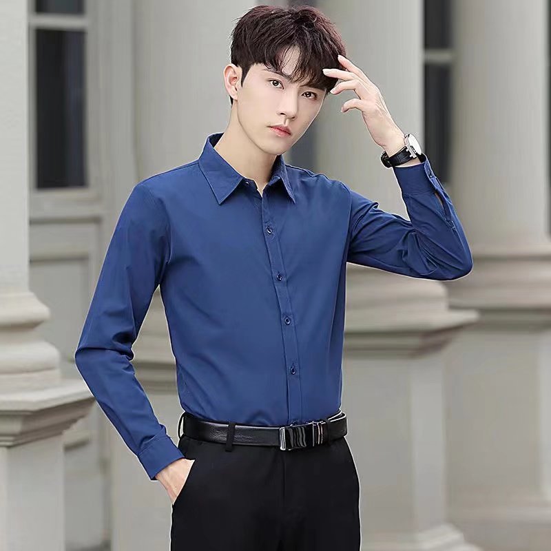 봄 핑크 남자의 슬림핏 긴팔 라펠 셔츠 남자의 한국 스타일 유행 플러스 사이즈 신랑의 최고의 남자 결혼식 원피스 겨울