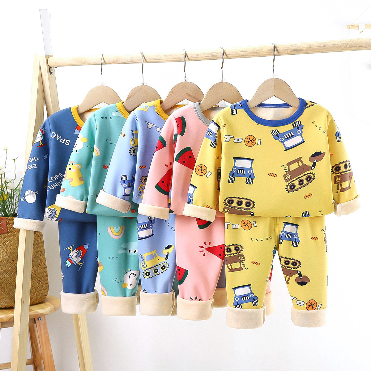 아동용 보온 속옷 세트 25 가을 겨울 새로운 스타일 중대형 아동복 소년 소녀용 긴팔 벨벳 두꺼운 아동복스토어 가기