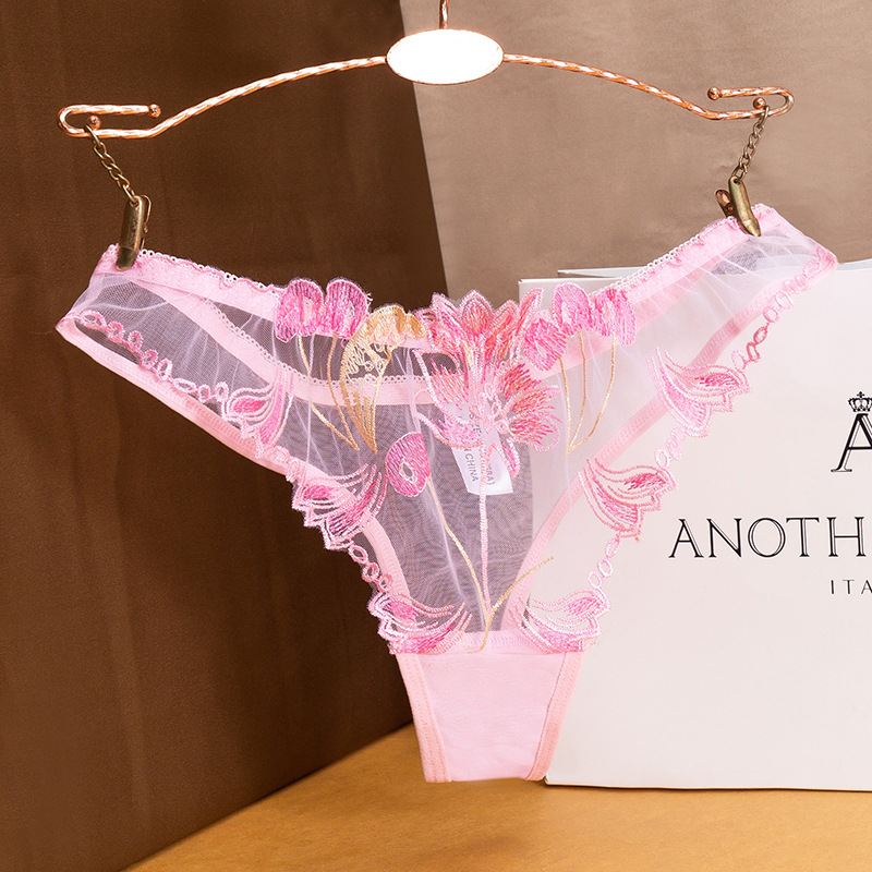메쉬 섹시한 레이스 속옷 자수 바지 낮은 허리 얇은 편안한 통기성 순면 여성용 팬티