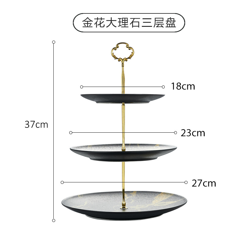 • 크리스탈 카본 마블링 골드 꽃 3 층 플레이트