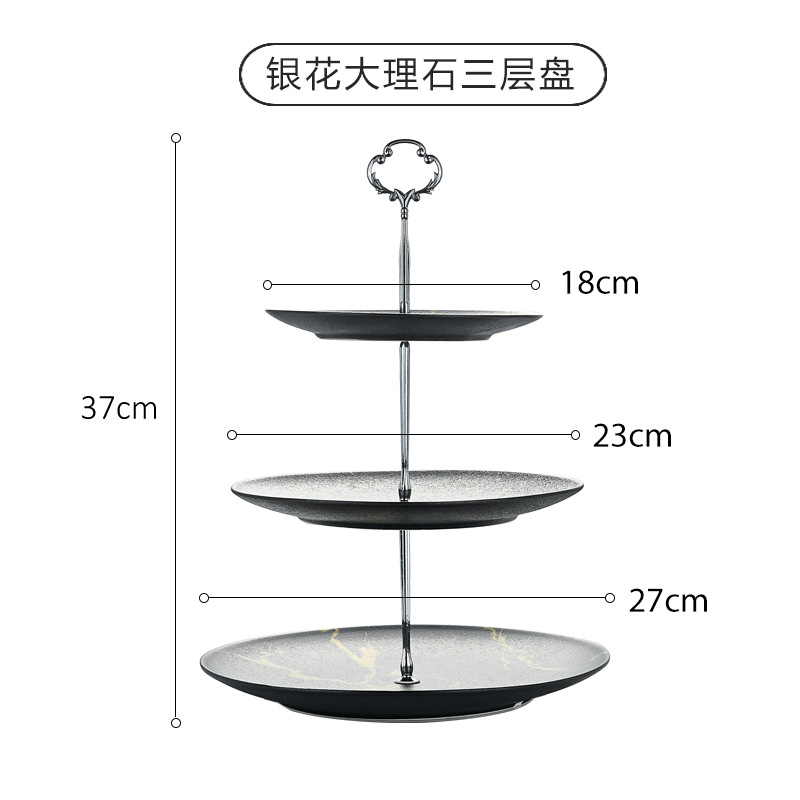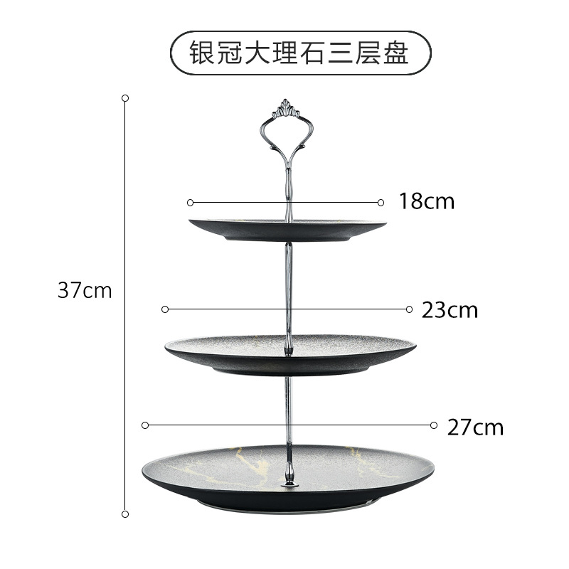 • 크리스탈 카본 마블링 실버 크라운 3 층 플레이트