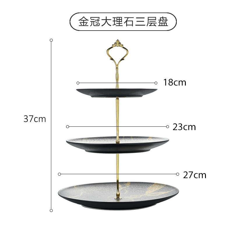 • 크리스탈 카본 마블링 골드 크라운 3 층 플레이트