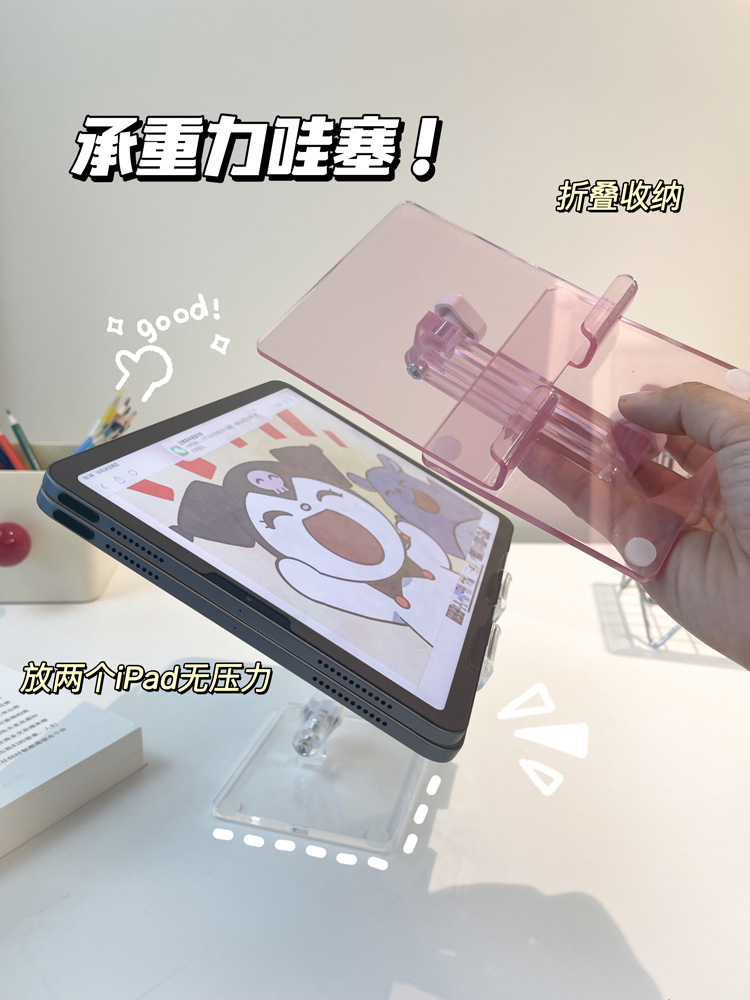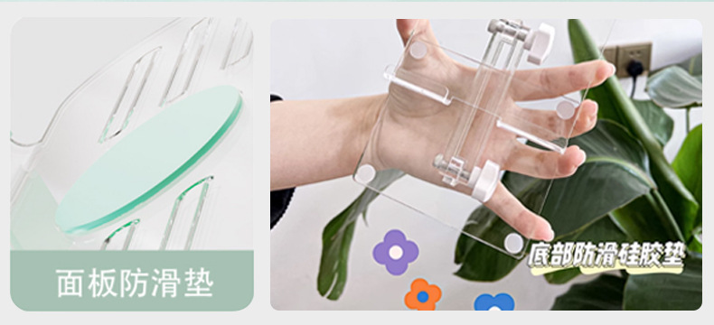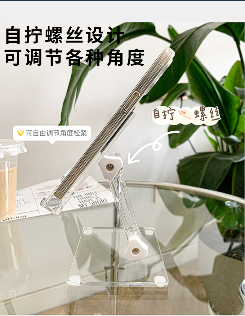 제조업체 맞춤형 아크릴 휴대폰 거치대, 데스크탑 라이브 방송용 게으름뱅이 거치대, 투명 접이식 태블릿 거치대 도매