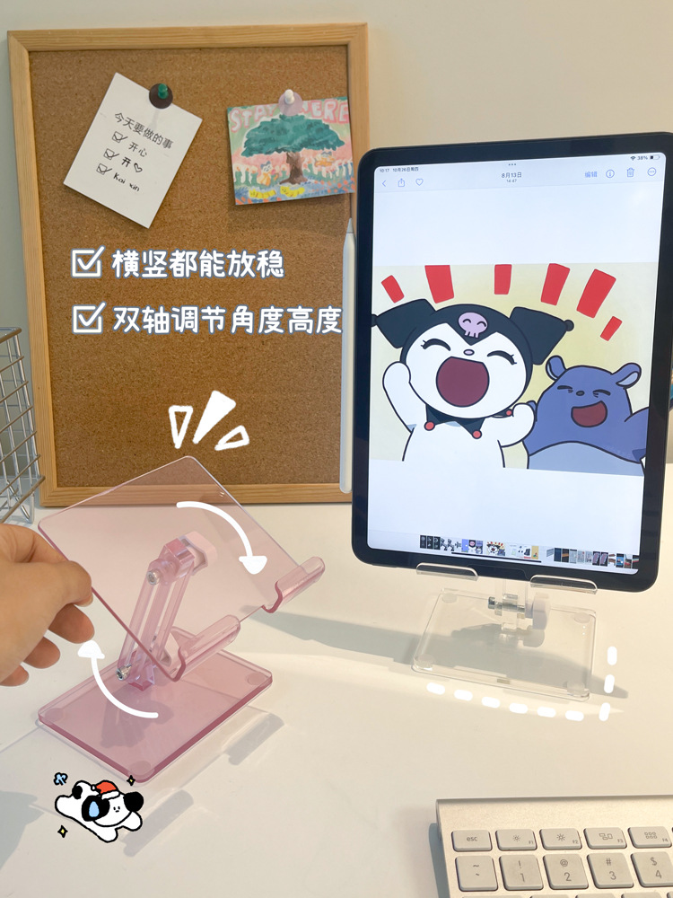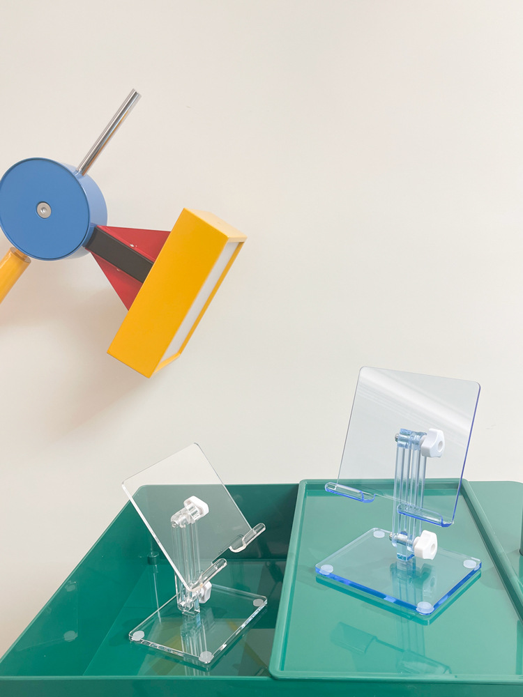 제조업체 맞춤형 아크릴 휴대폰 거치대, 데스크탑 라이브 방송용 게으름뱅이 거치대, 투명 접이식 태블릿 거치대 도매스토어 가기