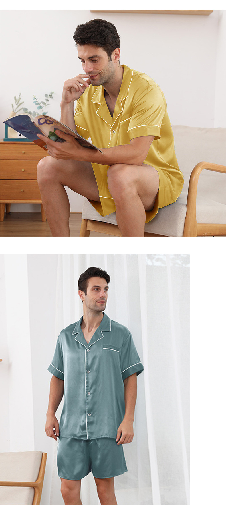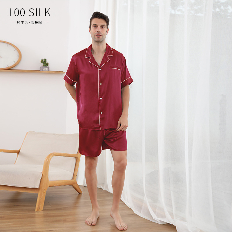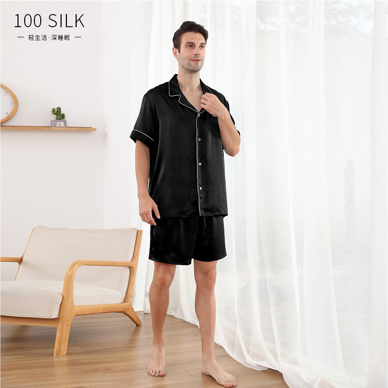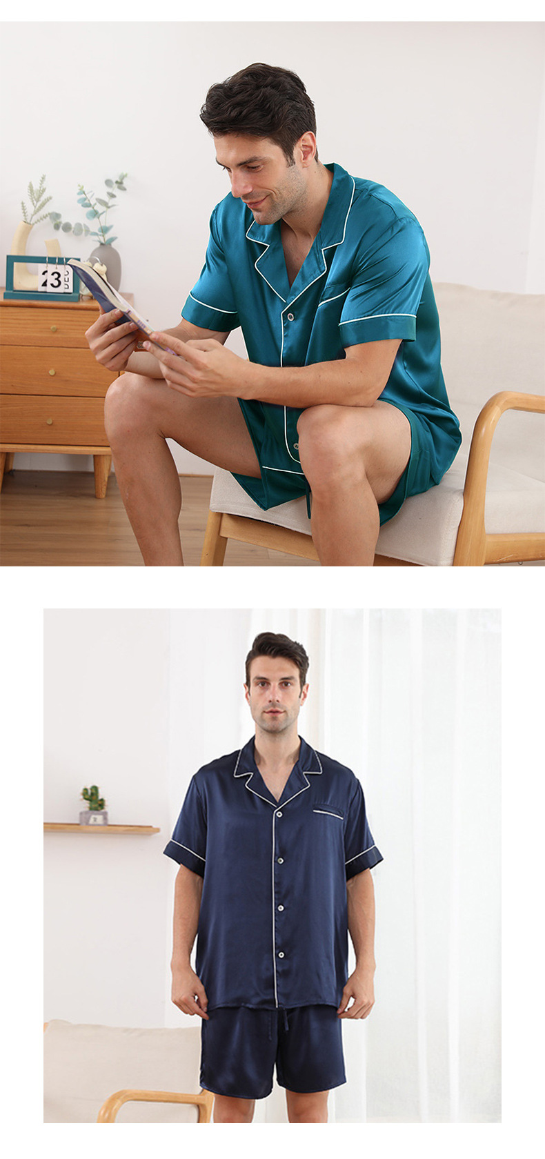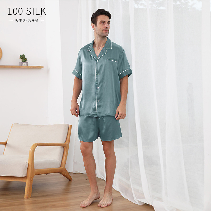 22 Mmi 크로스 보더 새로운 무거운 실크 잠옷 남자의 반팔 반바지 세트 실크 편안한 100 뽕나무 실크스토어 가기
