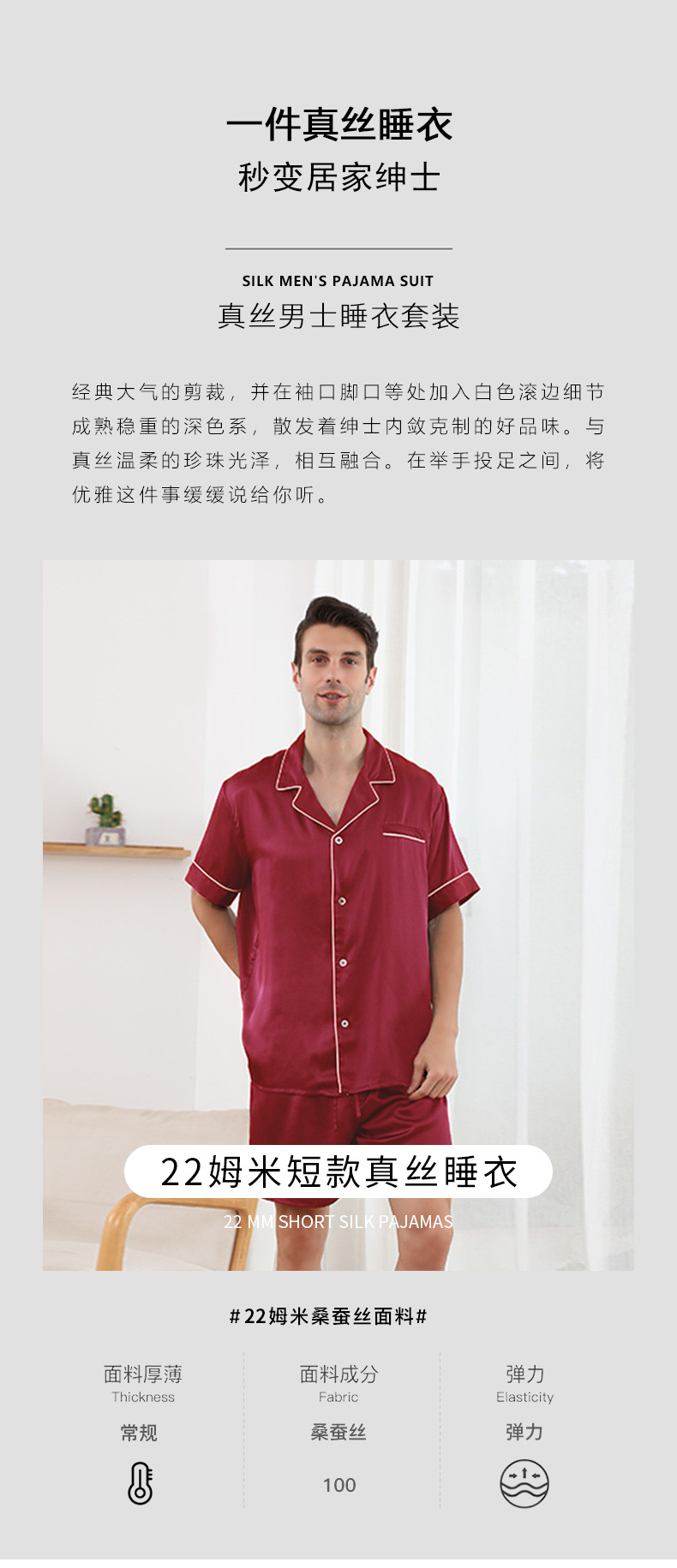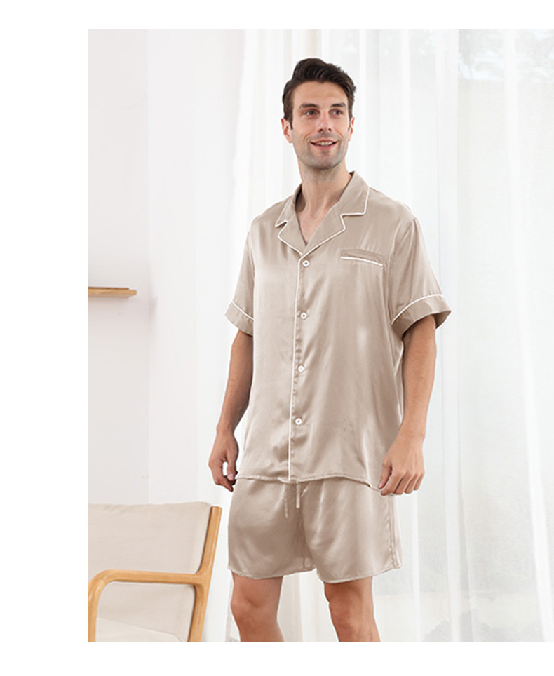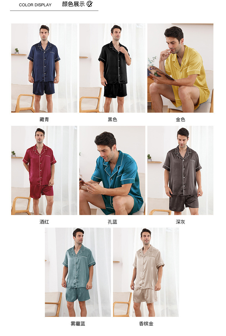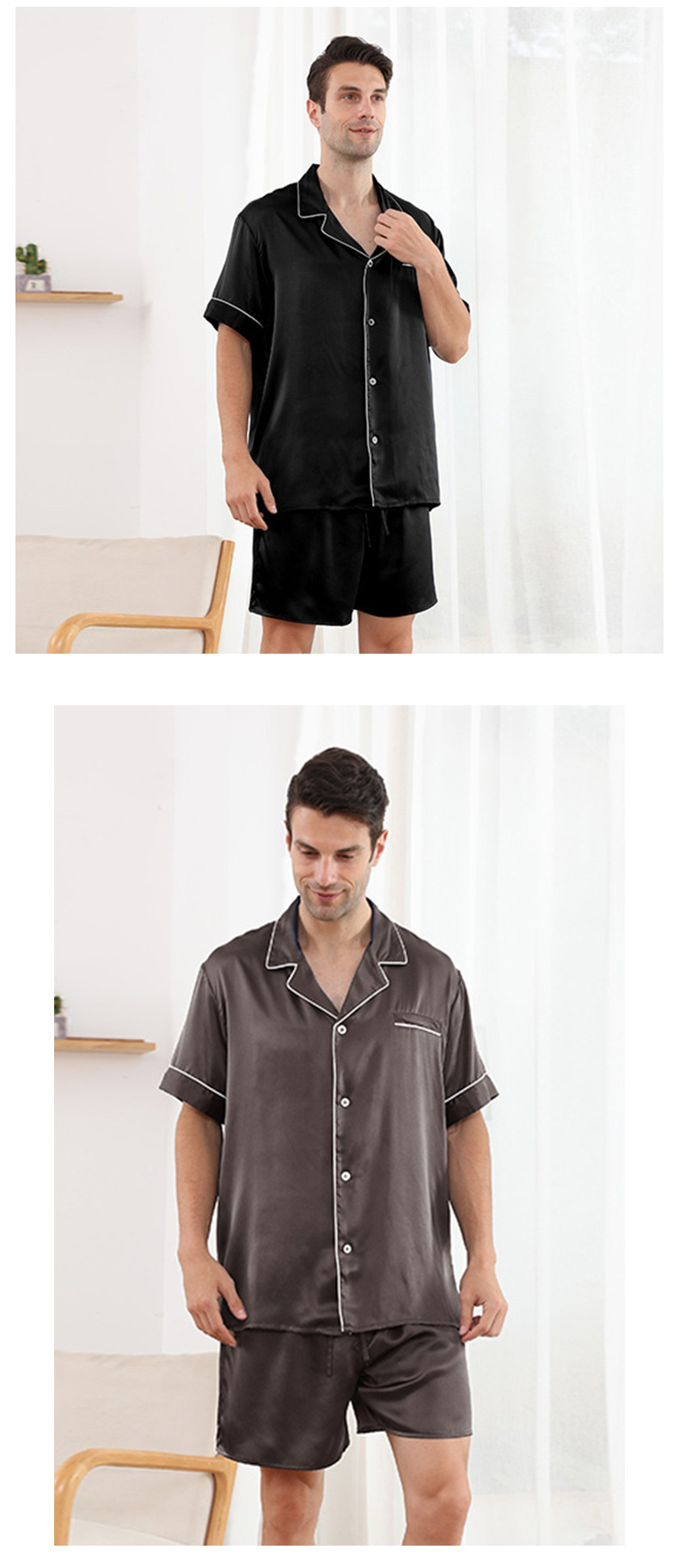 22 Mmi 크로스 보더 새로운 무거운 실크 잠옷 남자의 반팔 반바지 세트 실크 편안한 100 뽕나무 실크스토어 가기