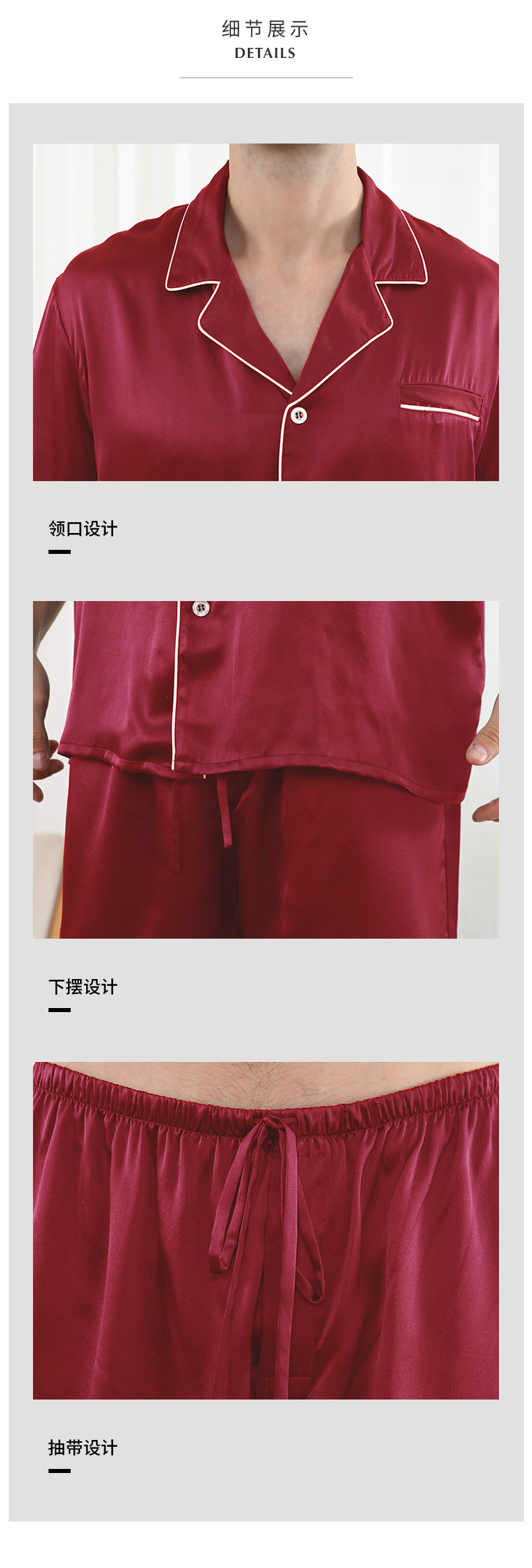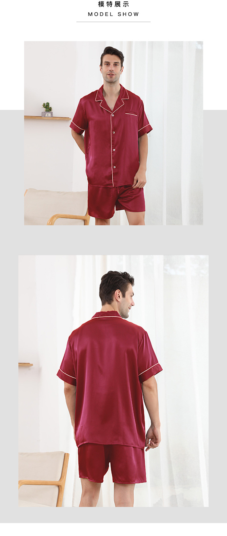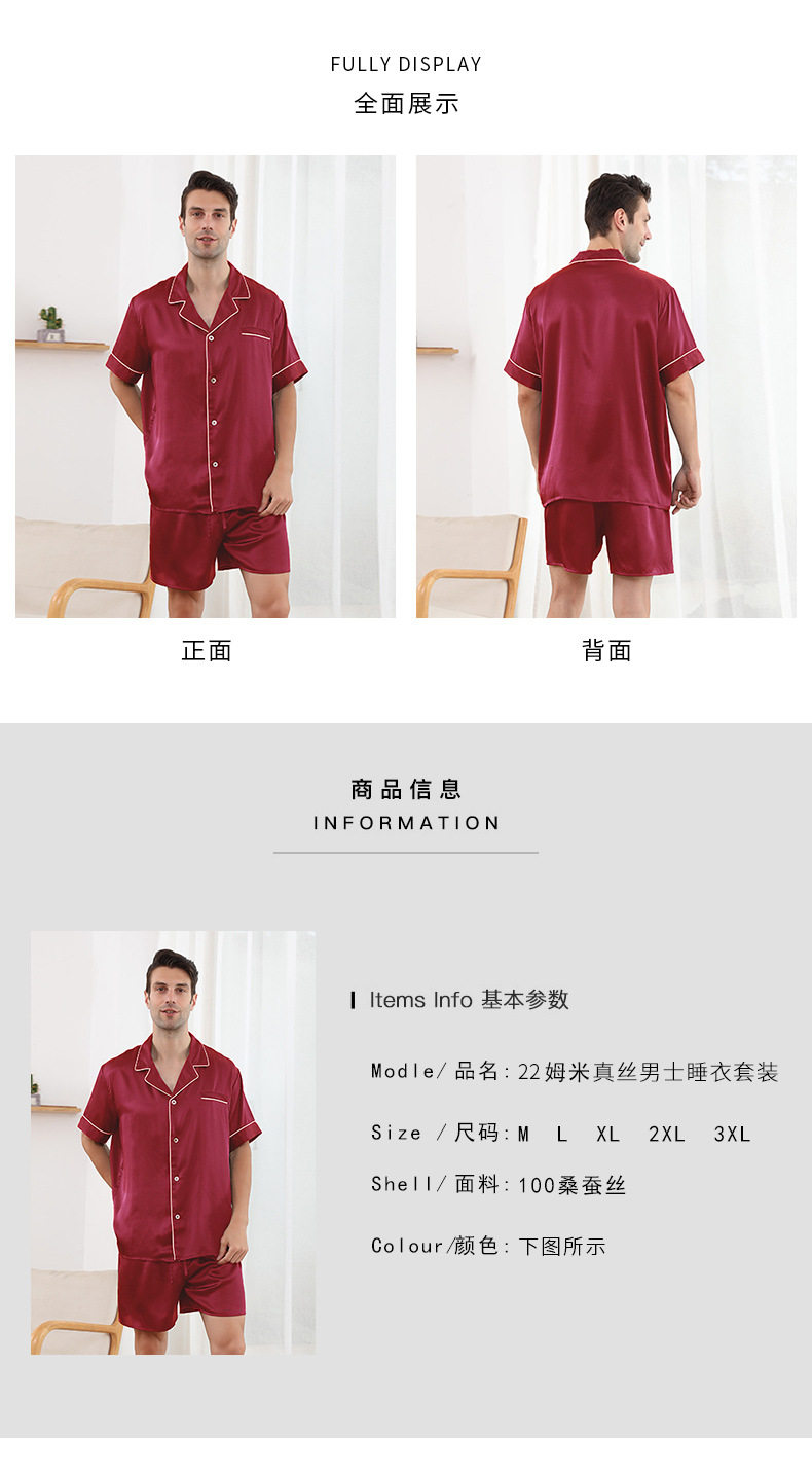 22 Mmi 크로스 보더 새로운 무거운 실크 잠옷 남자의 반팔 반바지 세트 실크 편안한 100 뽕나무 실크