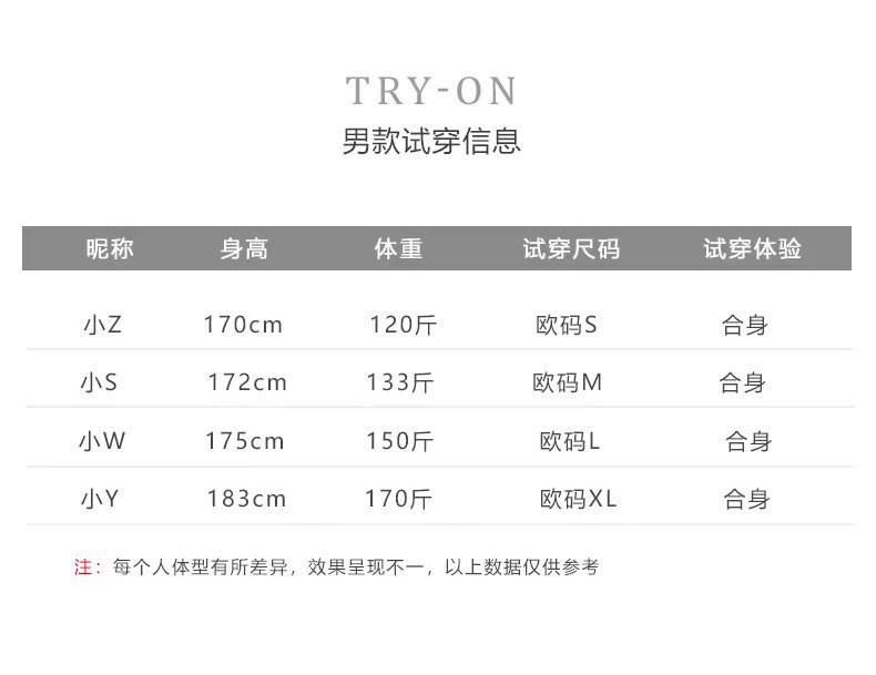 • 유럽 코드 S (국내 M 165-170cm 52.50 kg-62.50 kg