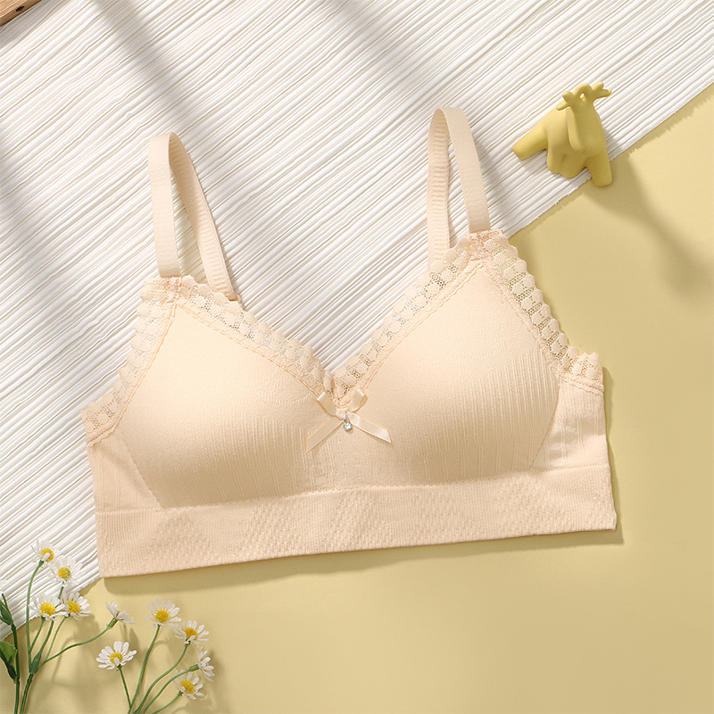 Shantou 속옷 얇은 섹션 여학생 와이어 없음 푸시 업 편안한 프랑스 소녀 스타일 고등학생 작은 가슴 브래지어