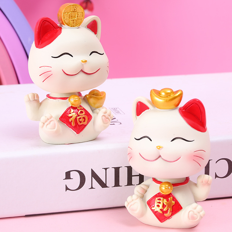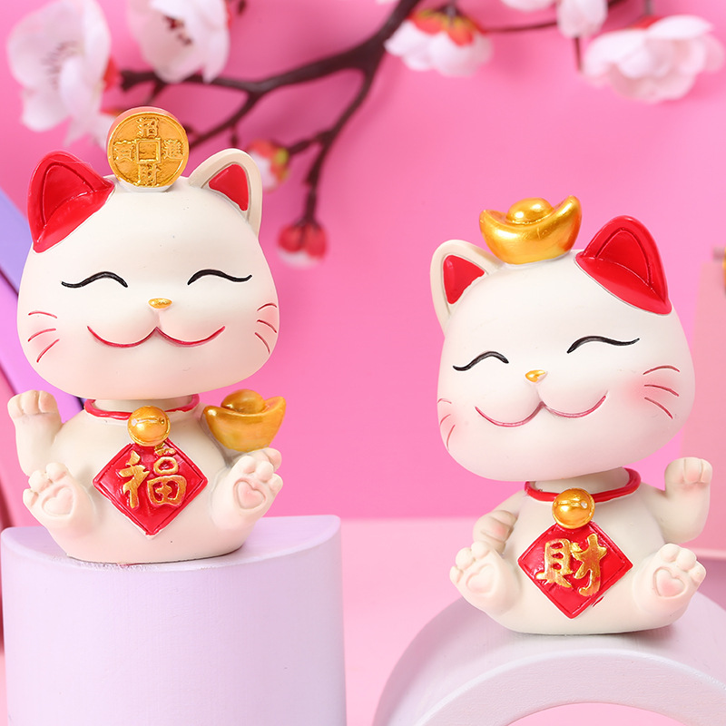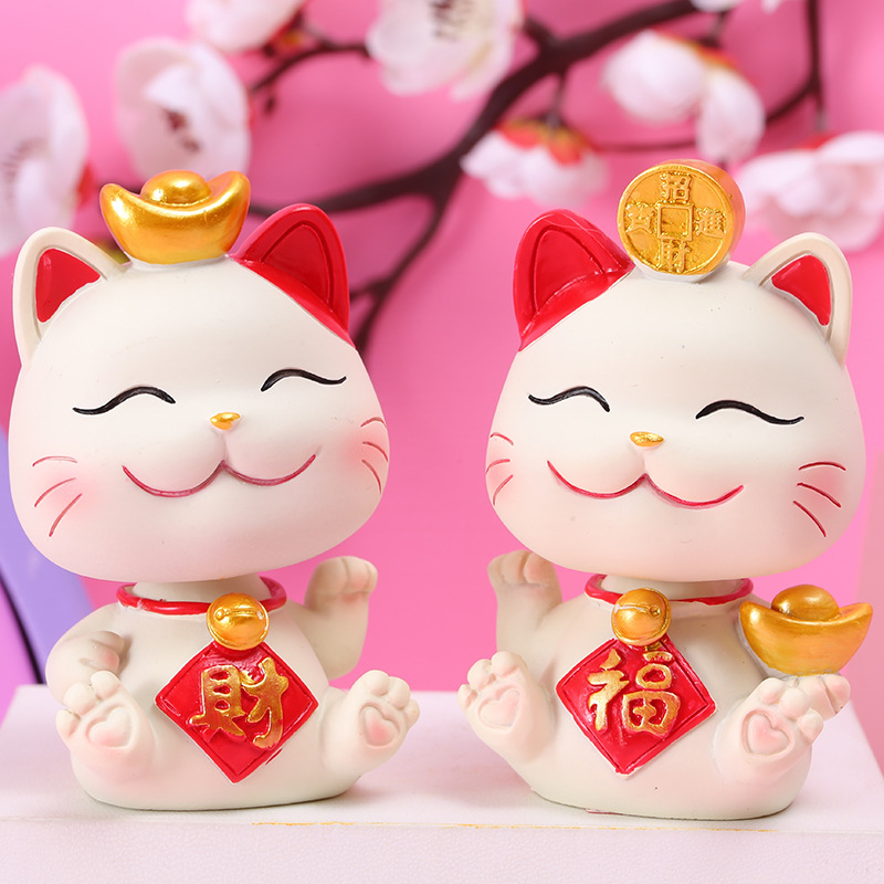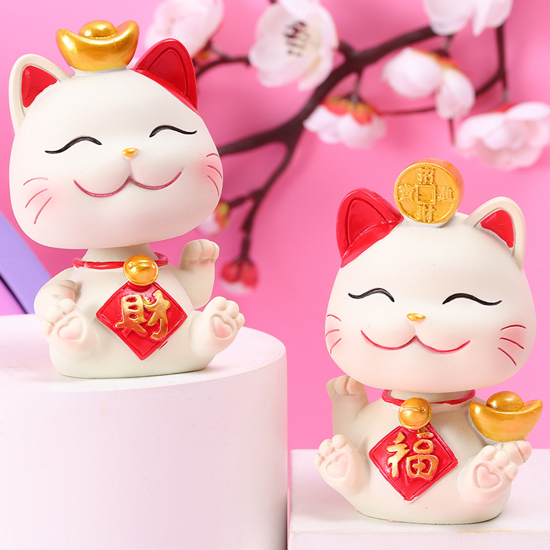 새로운 행운의 야옹 귀여운 고양이 쉐이크 헤드 자동차 장식품 수지 공예 장식 케이크 베이킹 장식