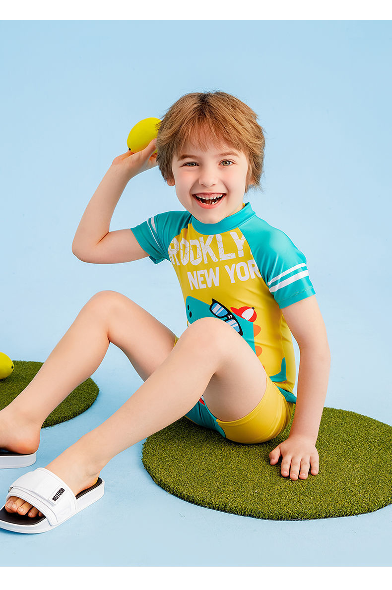361 어린이 수영복 원피스 공룡 소년 중간 및 큰 어린이 수영복 속건 통기성 귀여운 만화 인쇄