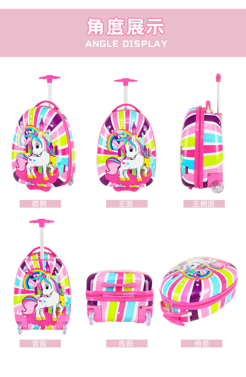 어린이용 트롤리 캐리어, 여아용 에그쉘 초등학생용 여행가방, 18inch 기내 반입 가능 비밀번호 여행가방, 남아용 회전 바퀴 여행가방