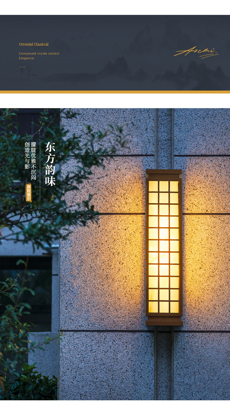 대리석 벽 램프 야외 조명 럭셔리 발코니 램프 새로운 중국 선 스타일 벽 램프 가정 문 외부 벽 램프 방수 정원 램프