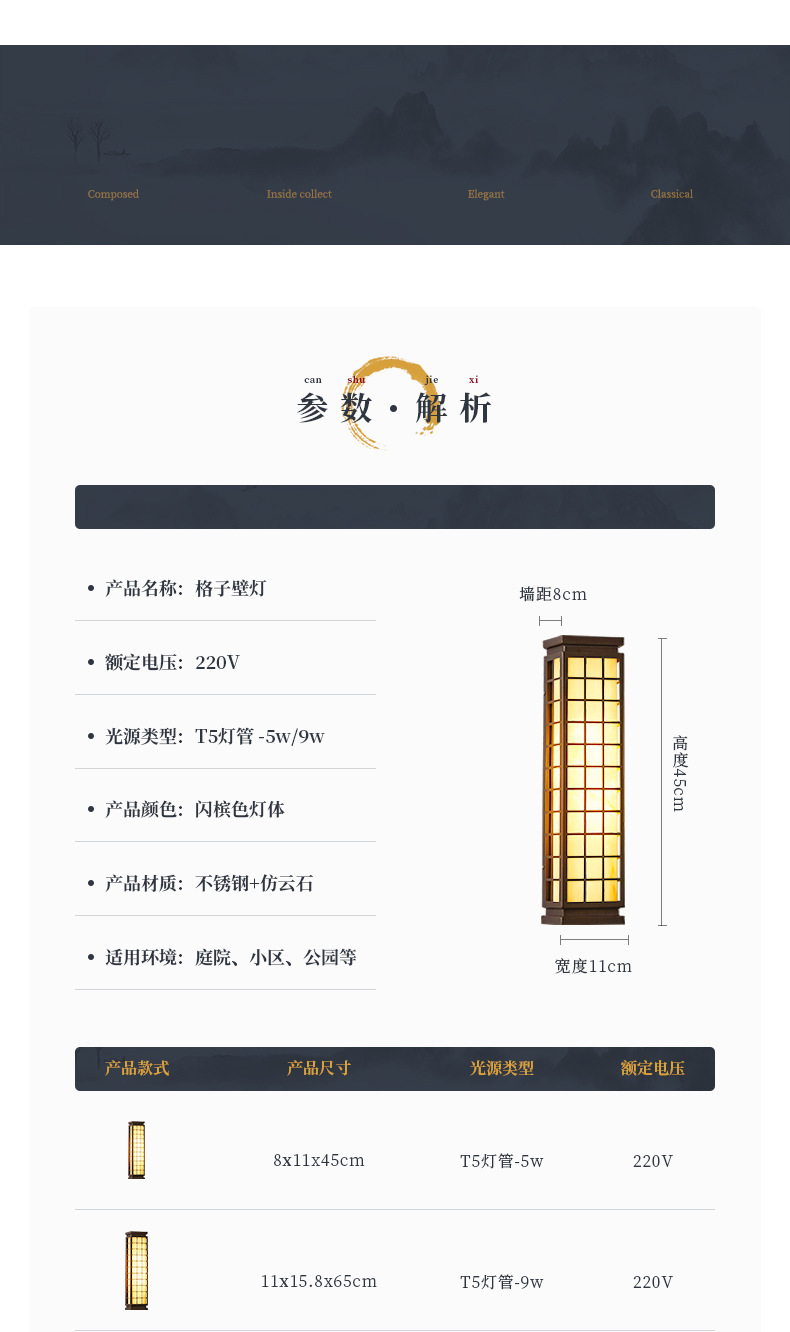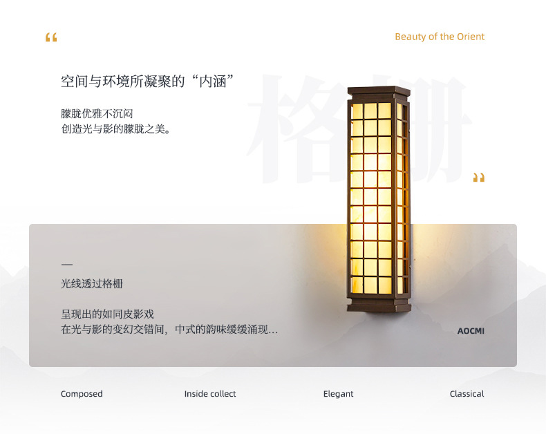 • 전원/새로운 중국 격자 무늬 벽 램프/중간 65cm/9W 따뜻한 빛