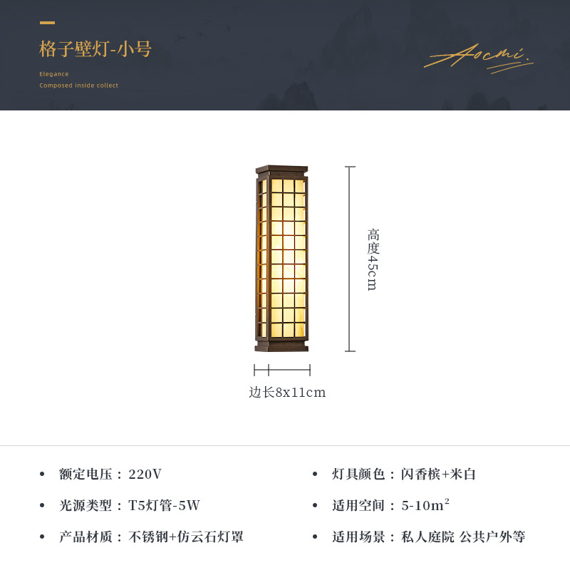 • 전원 연결/신중국 격자 벽 램프/스몰 사이즈 45cm/5W 따뜻한 빛