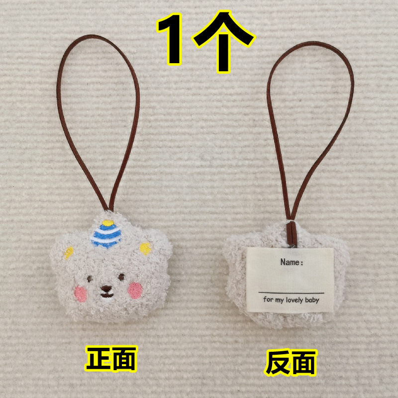 材质:毛绒刺绣,背面是长方形印字名字牌(热熔胶粘贴)