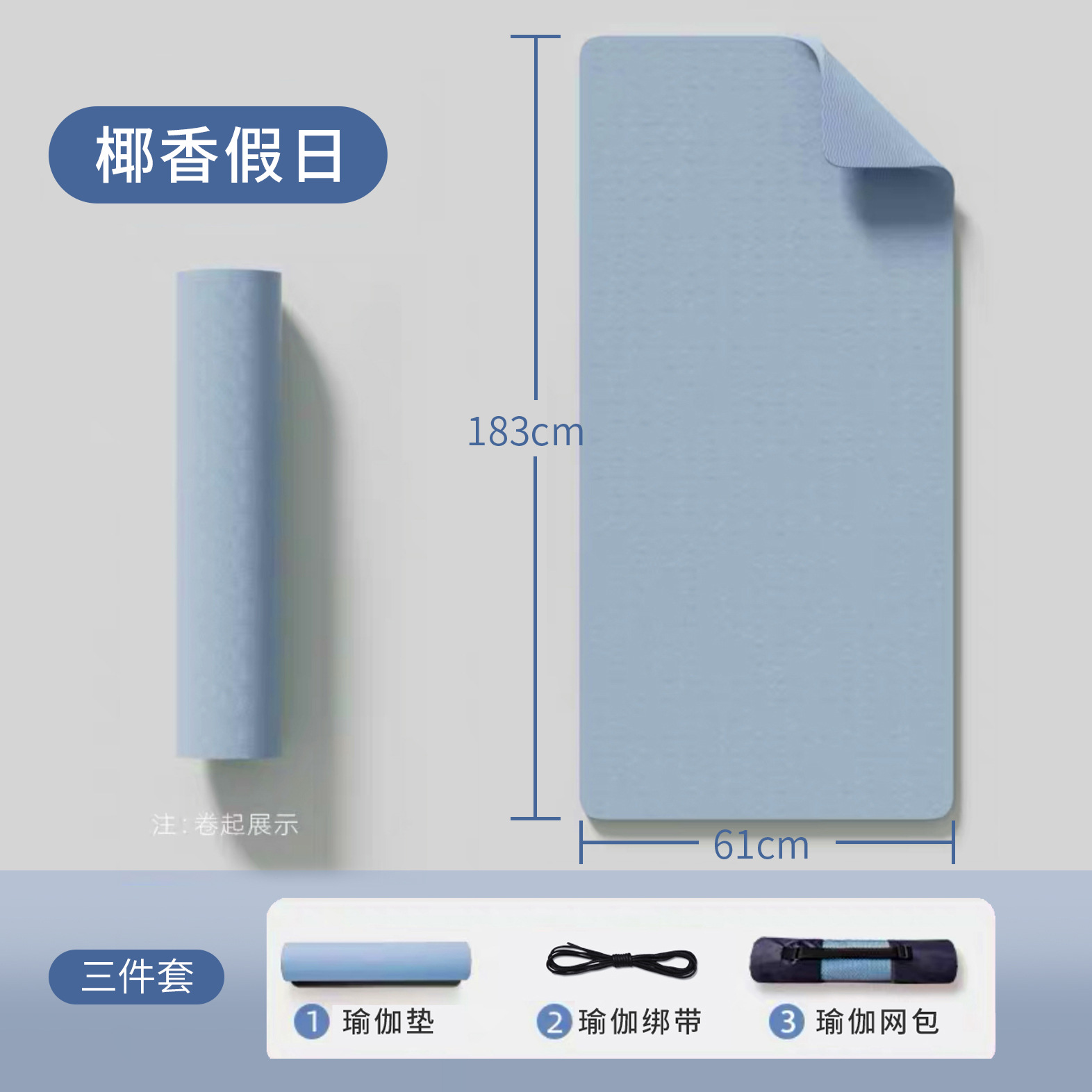 • 자세 선이없는 순수한 파란색 (183*61*6mm) 3 피스 세트