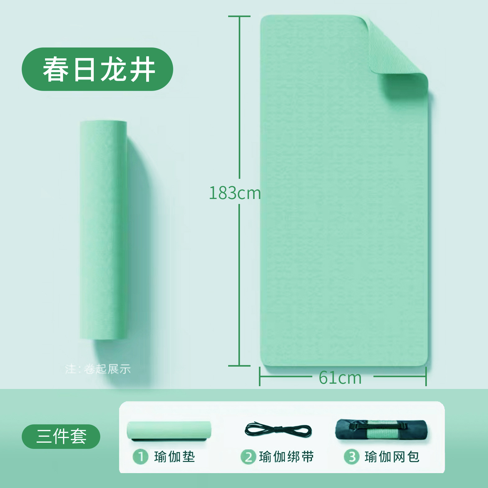 • 자세 선이없는 순수한 녹색 (183*61*6mm) 3 피스 세트